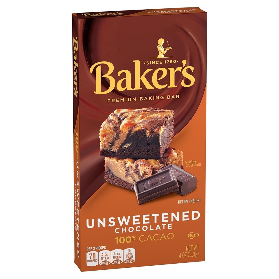 Primary image for Baker's Unsweetened Chocolate  Baking Bar, 100% Cacao, 4 oz (113 g)