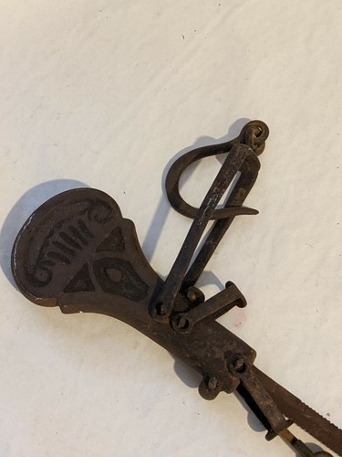 A la venta esta una herramienta de escala manual de granja antigua de hierro fundido antiguo usado con peso.