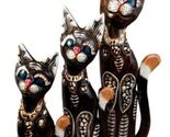 Balinese Wood Handicraft Blue Eyed Feline Cat Family Set of 3 Figurines 20"H