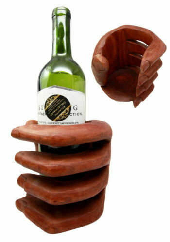 - Balinese Wood Handicrafts Giant Hand Wine Oil Bottle Holder Rack Figurine 6.25"H