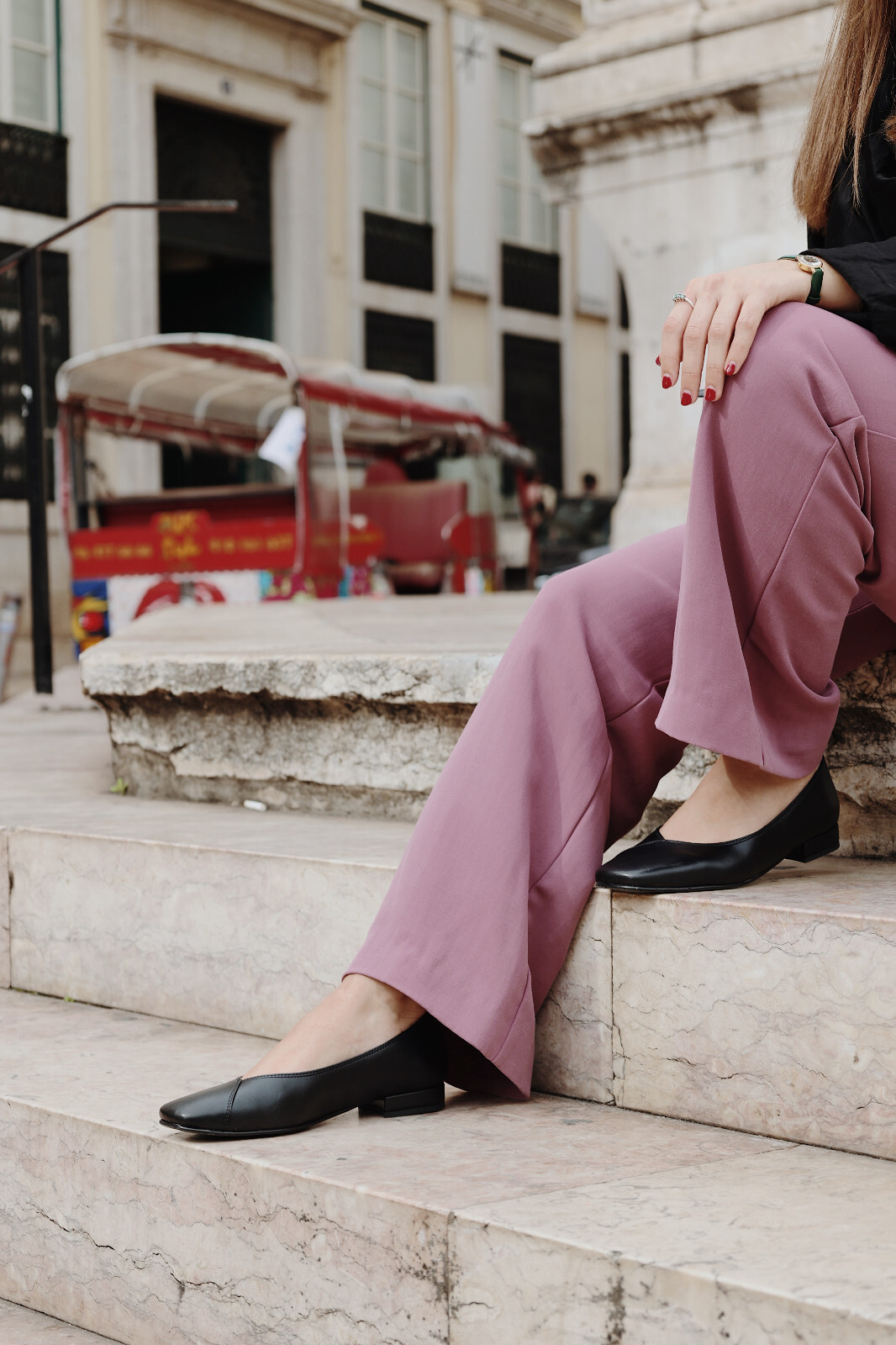 - Ballerines pour femmes véganes en Apple Leather noire chaussures plates ballet