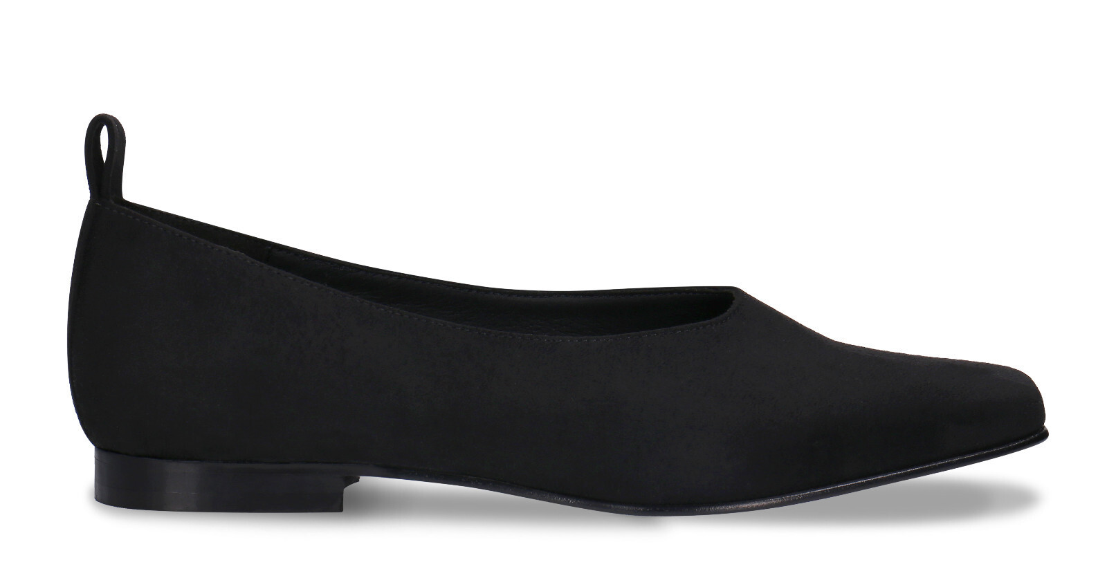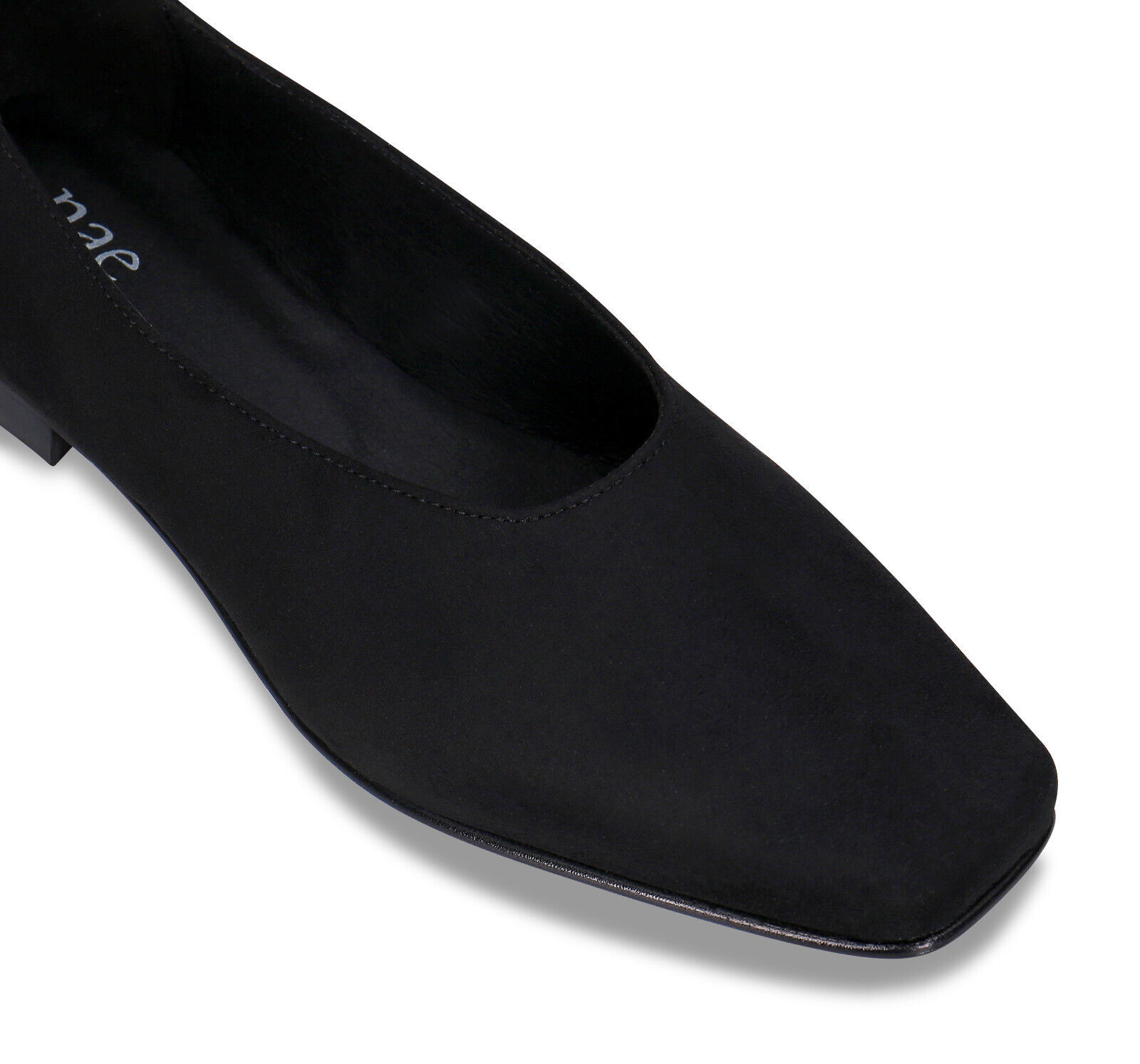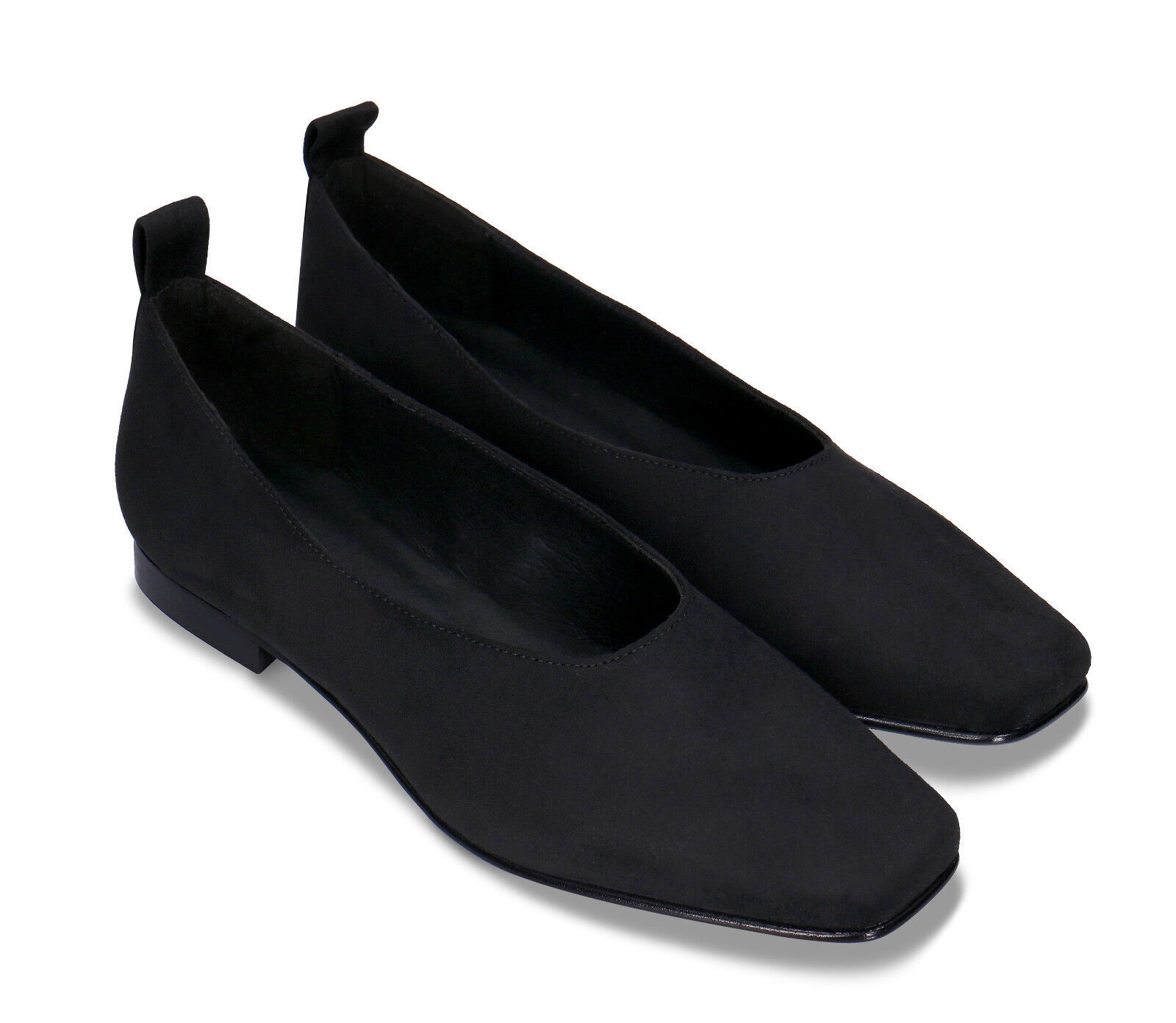 - Ballerines véganes chaussures pour femme noir avec talon plat effet daim doublé