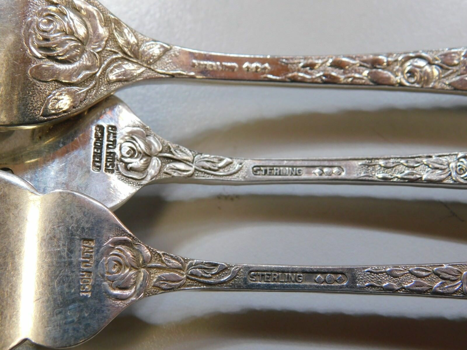 Excellent condition, with no monograms. Marks on pieces vary (see photo). This set will be beautifully professionally polished and sealed in individual plastic sleeves prior to shipping.