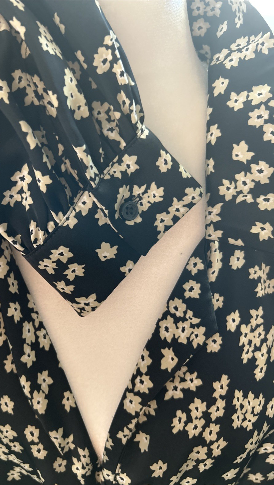 - Banana Republic Black Floral Satin Wrap Top Womens MED Long Sleeve, Pre-Owned