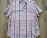Primary image for Banana Republic Short Sleeve Button Down Linen Cotton Plaid Orange White Blue L