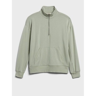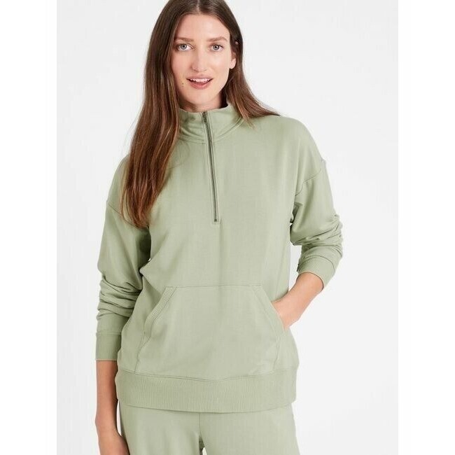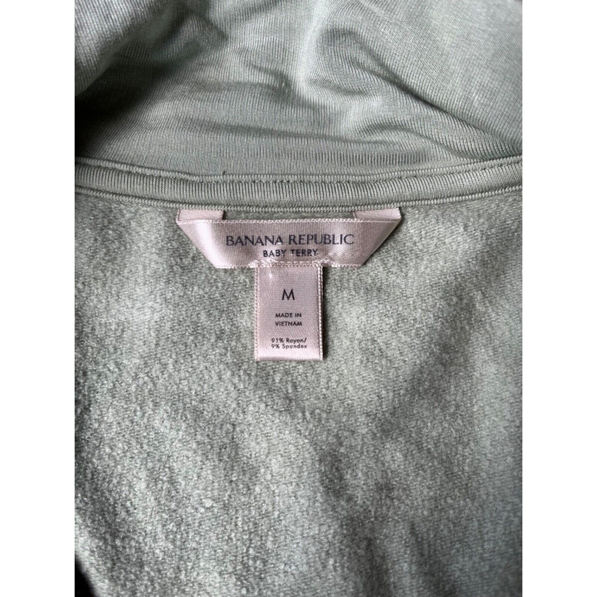 - Banana Republic Sz M Sage Baby Terry Zip Sweatshirt Fleece Kangaroo Pocket