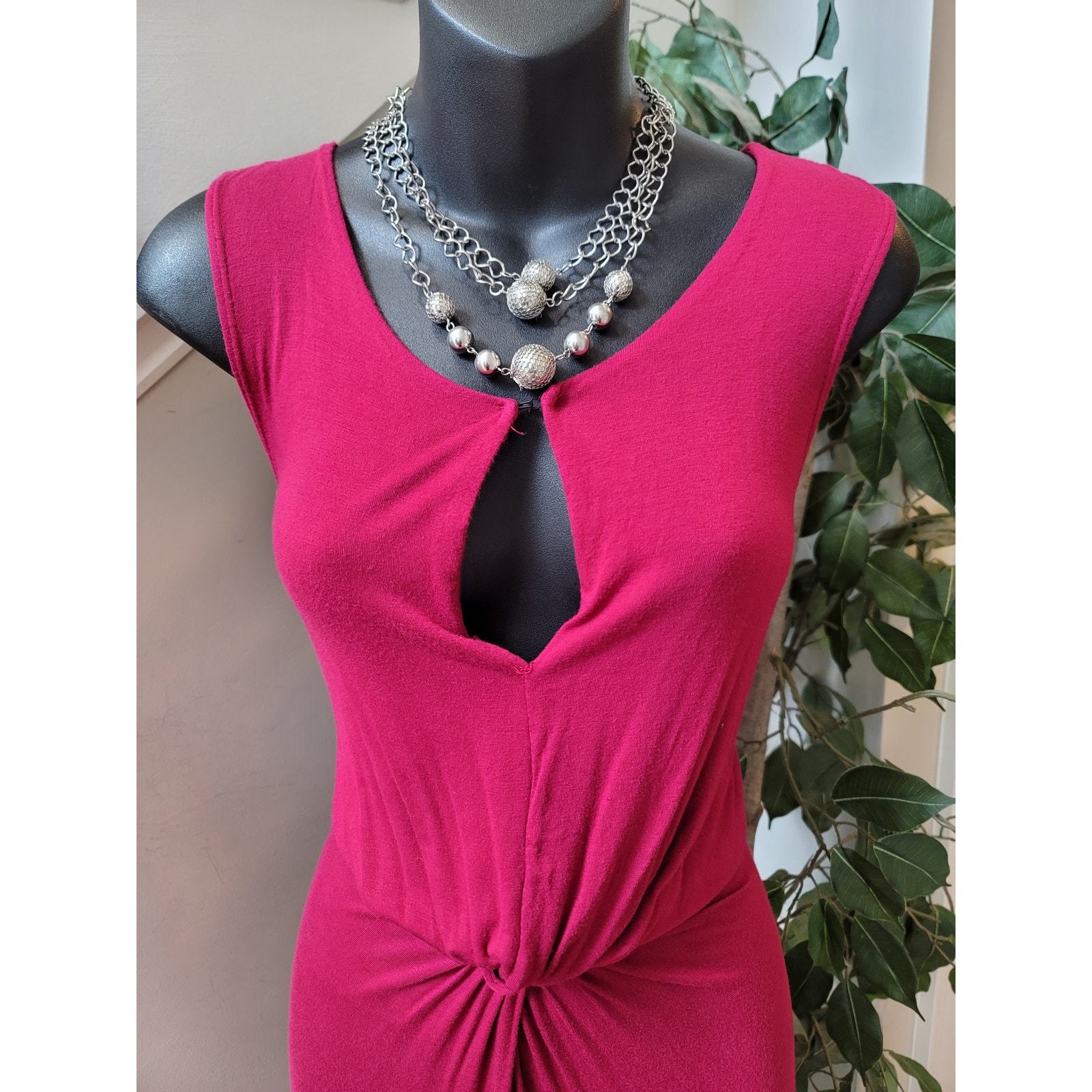 Bar III women?s romper in size XL features a vibrant pink color with a flattering sleeveless design. Made in the USA, it blends soft rayon with stretch spandex for comfort and movement. The twist front with keyhole cutout adds chic detail, perfect for casual wear, summer outings, or evening events. Stylish, breathable, and easy to wear.