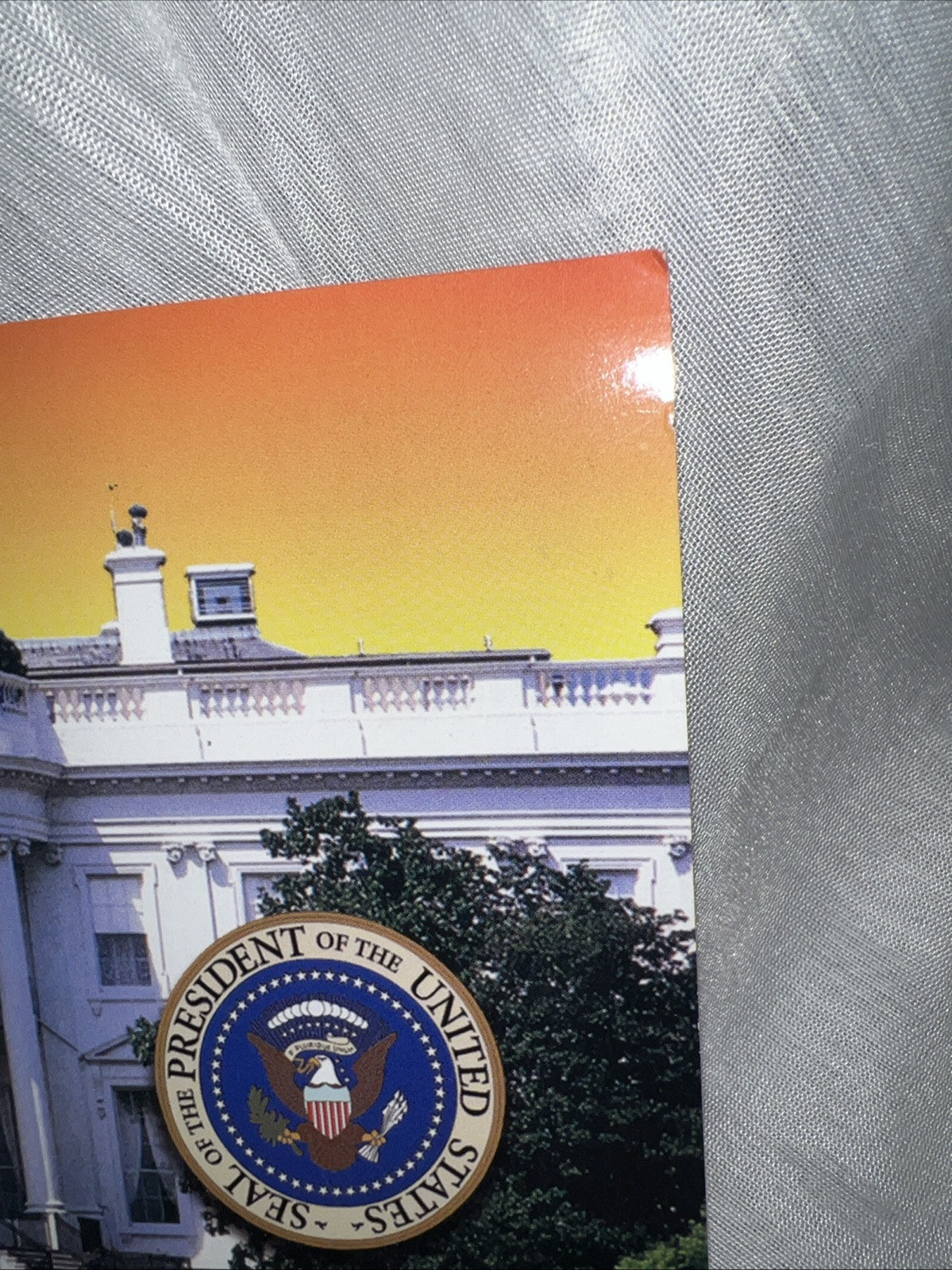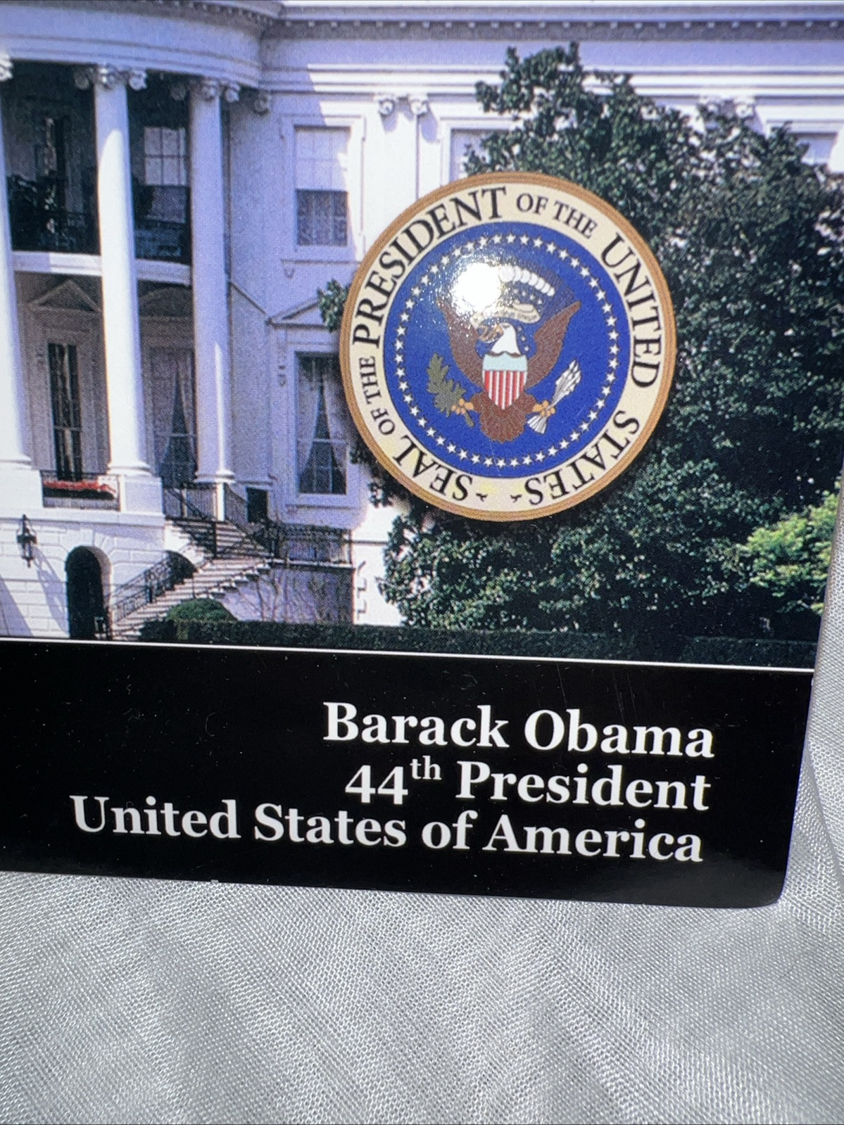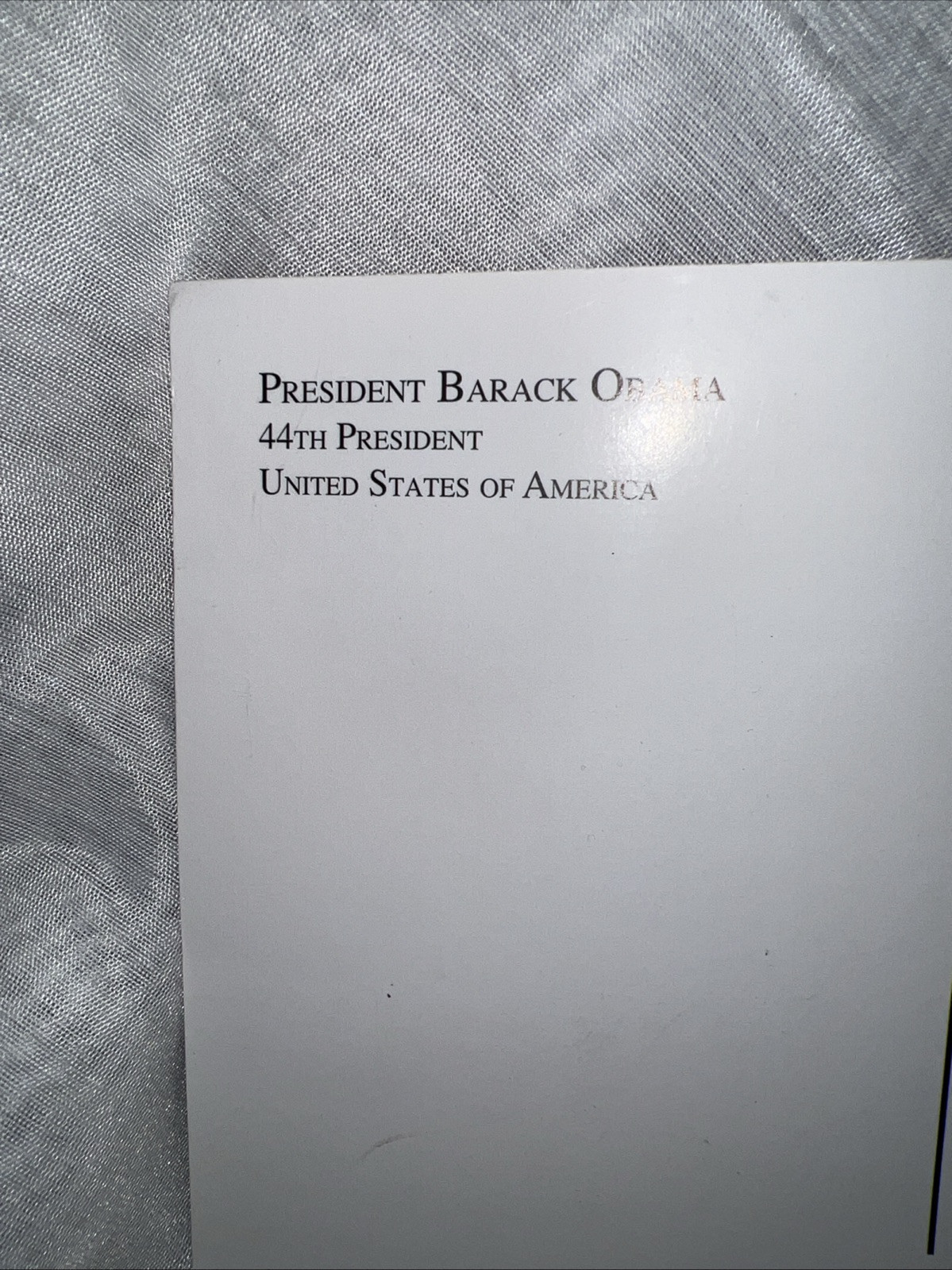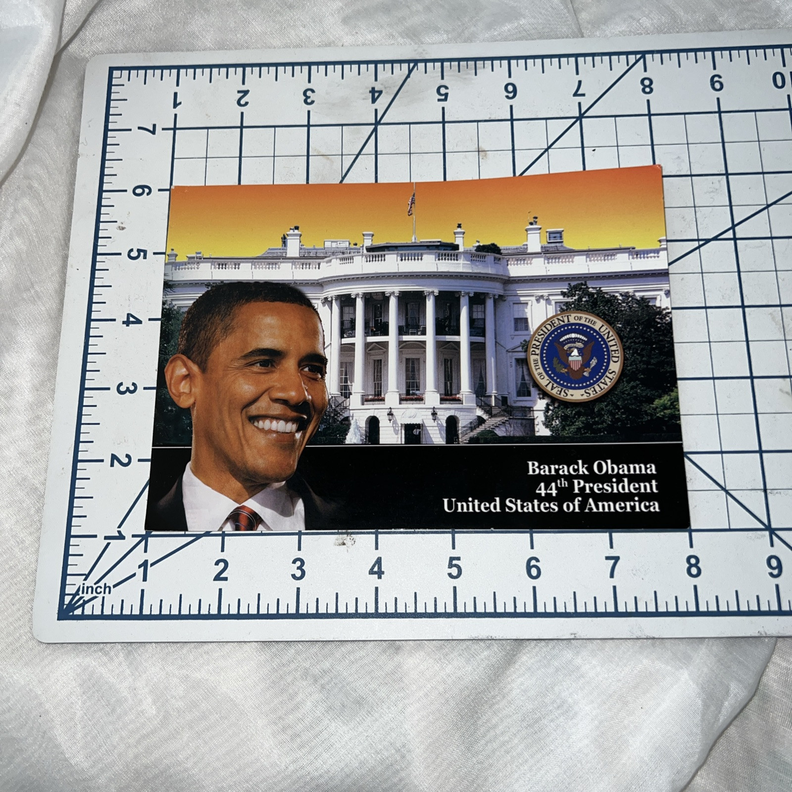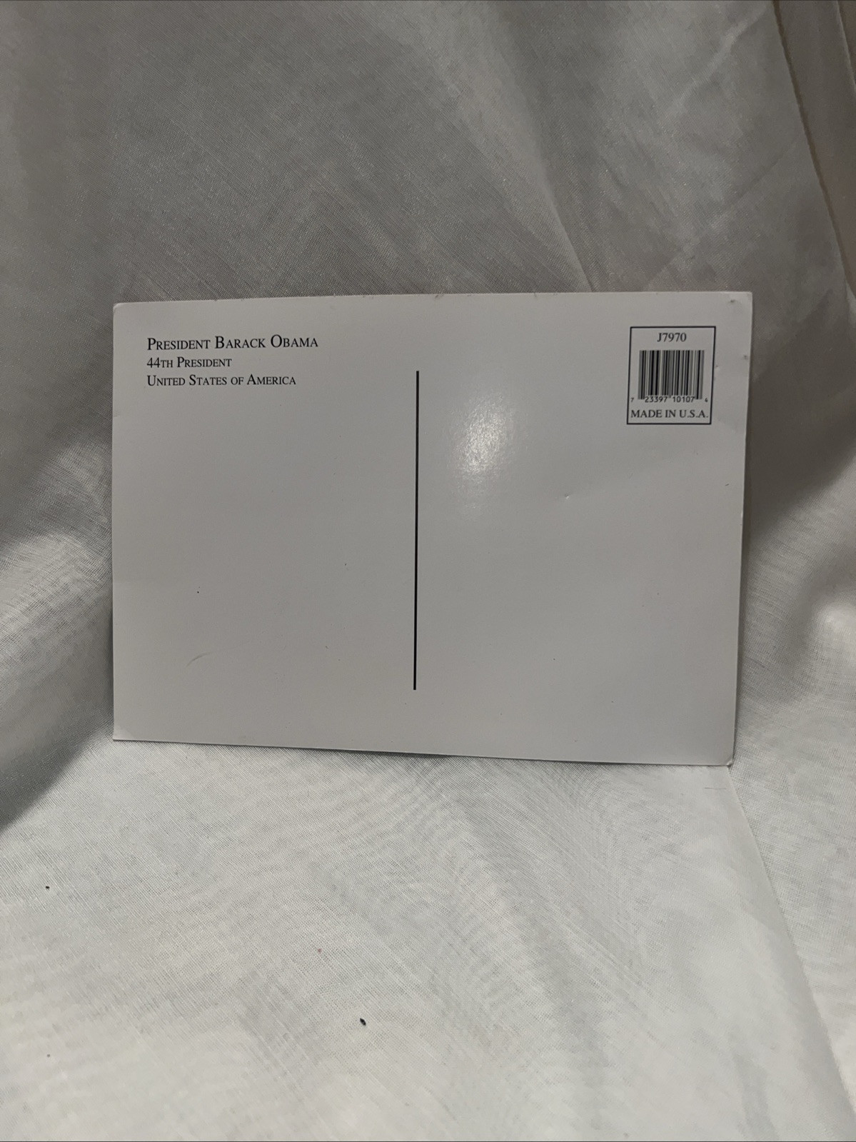 The postcard features Barack Obama, the 44th President of the United States, with a view of the White House in Washington, D.C. It is a printed lithograph measuring 4 x 6 inches, showcasing the iconic residence where the President resides. This original postcard captures a significant moment in American politics and history, making it a valuable collectible item for those interested in presidential memorabilia.