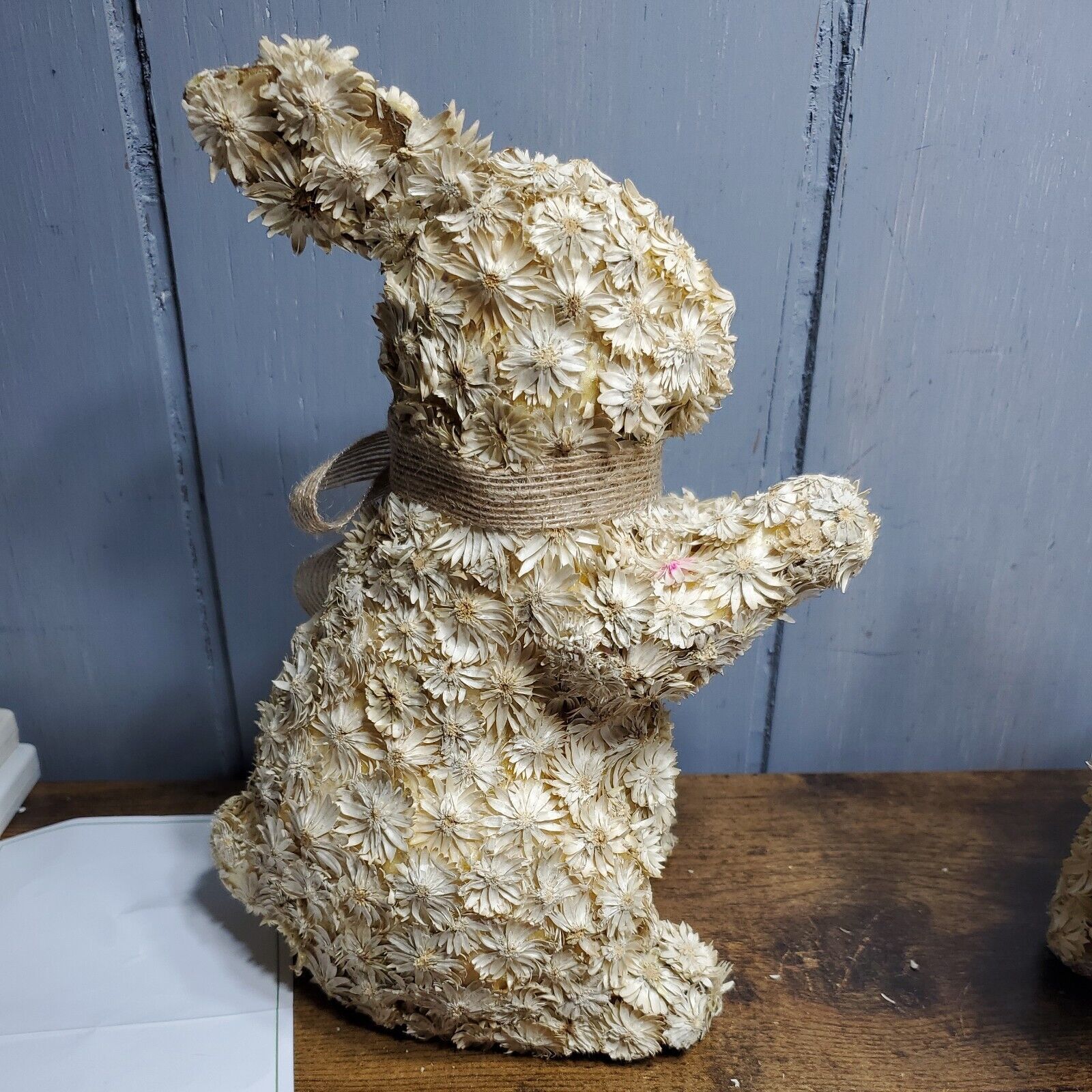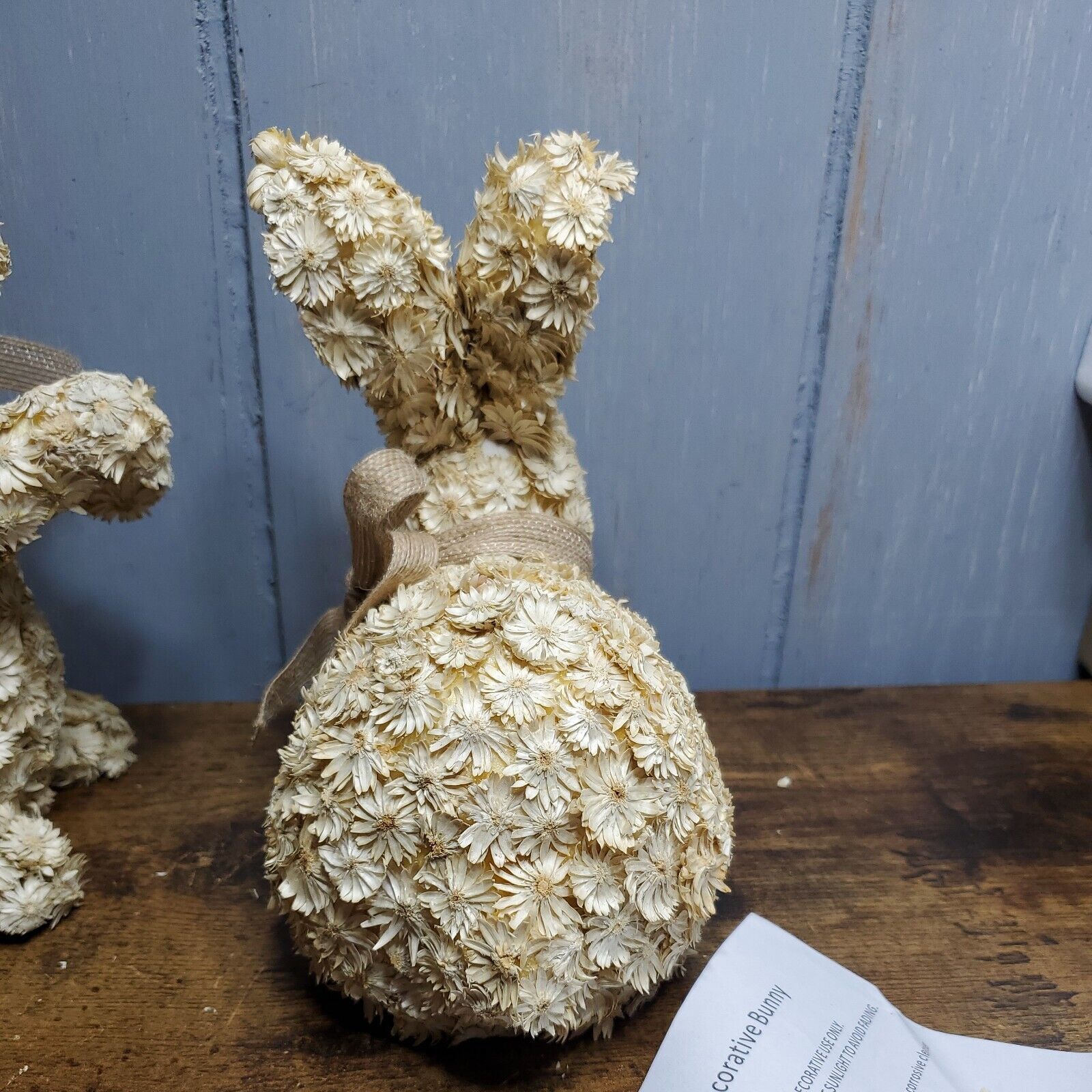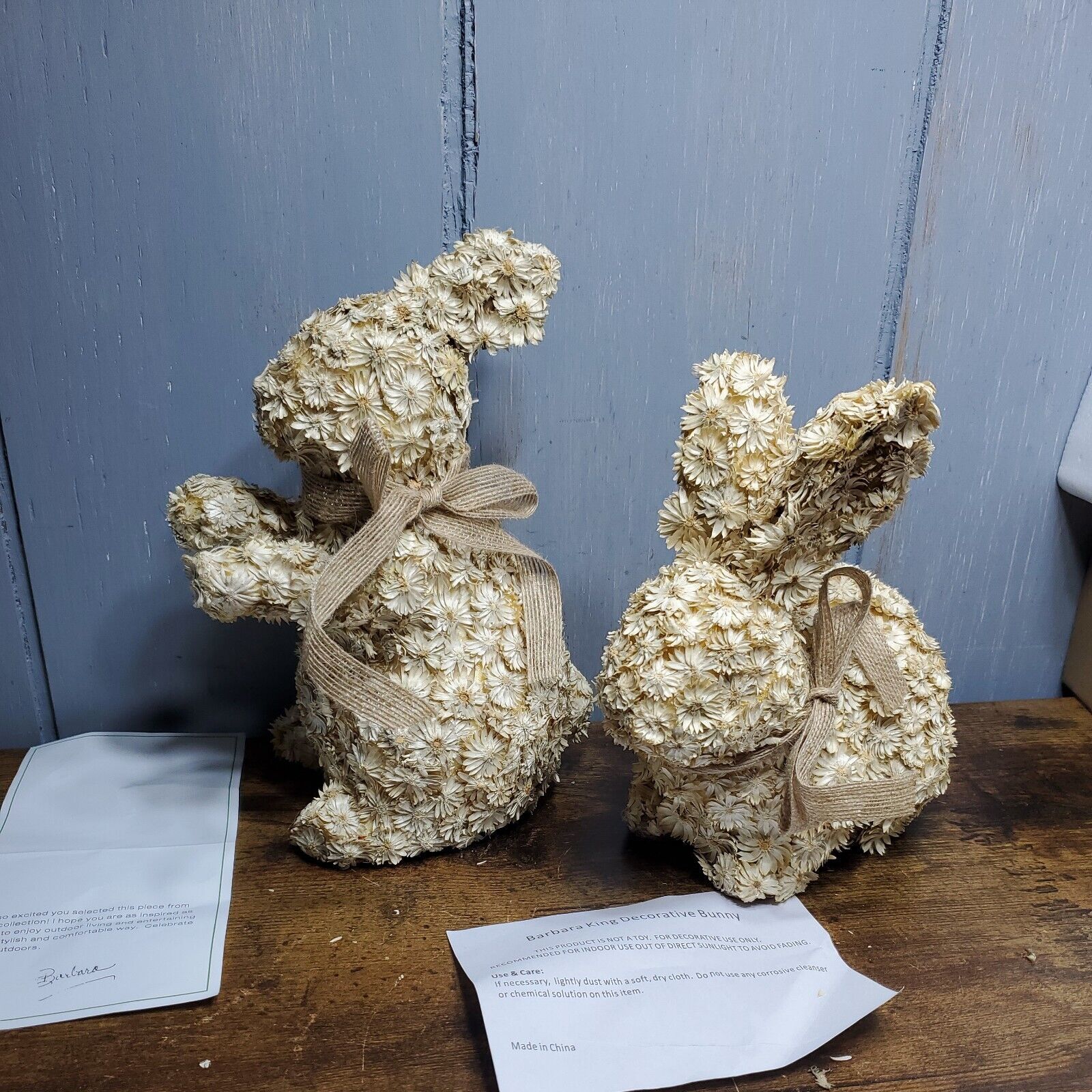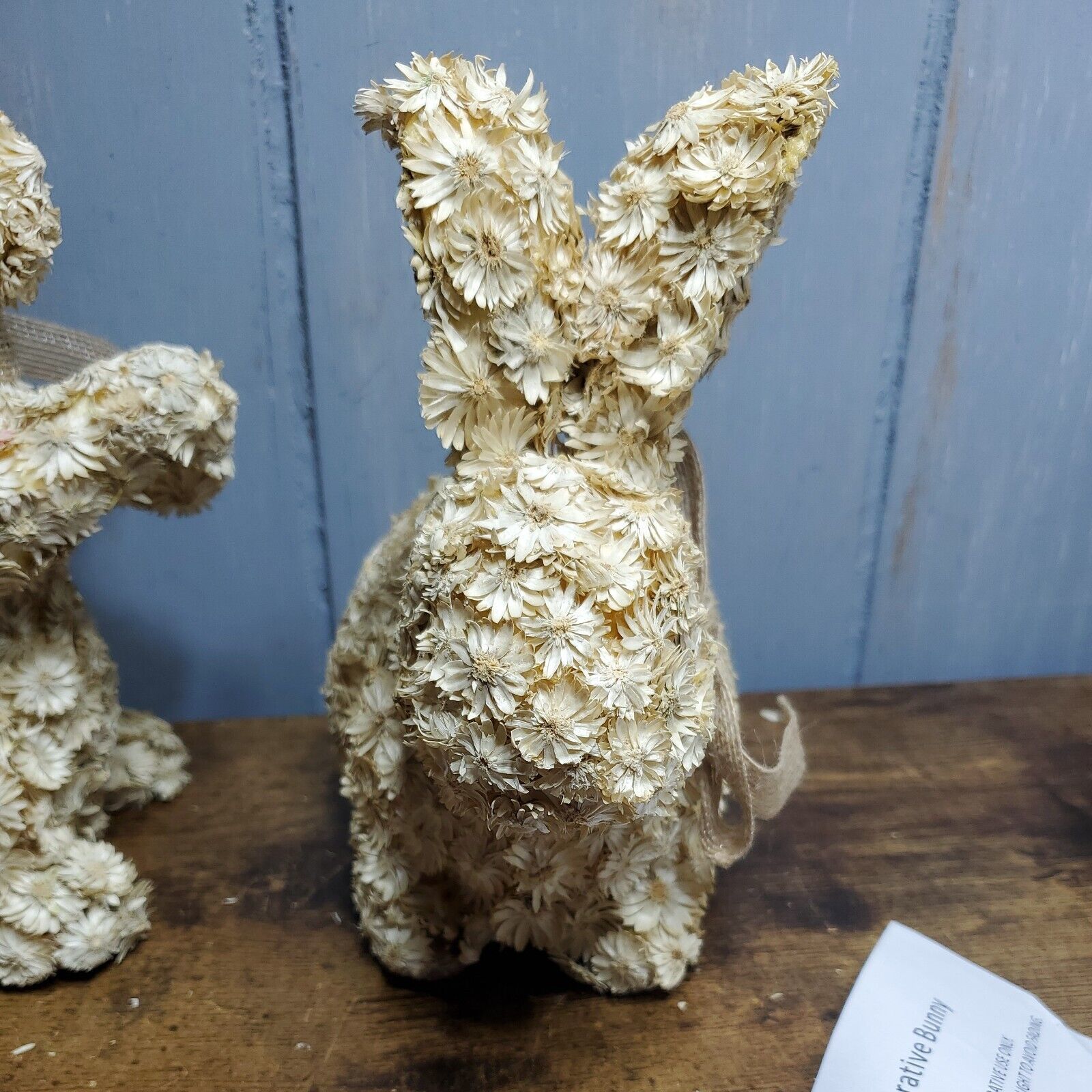 - Barbara King set of 2 natural dried floral Bunnies with bows Collection