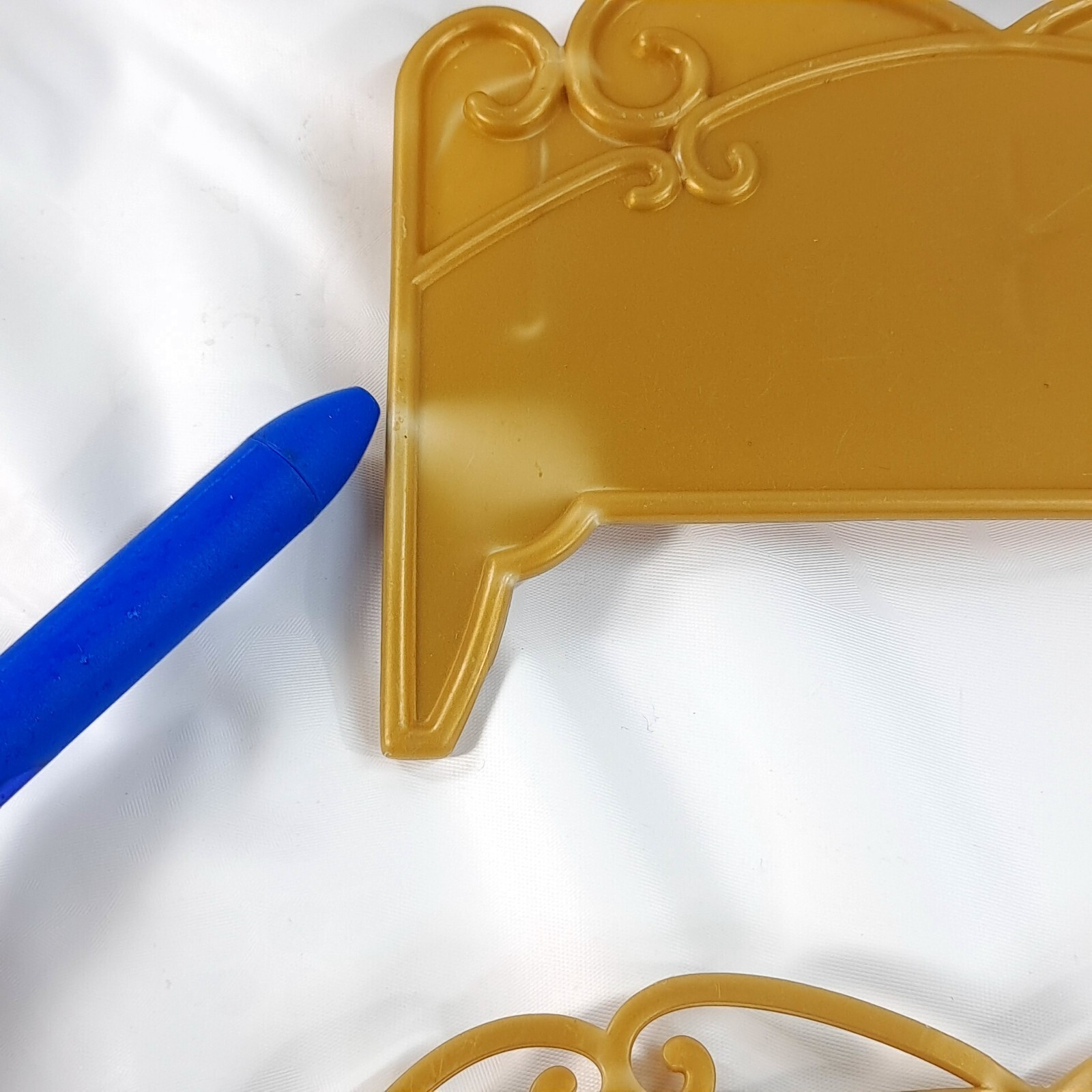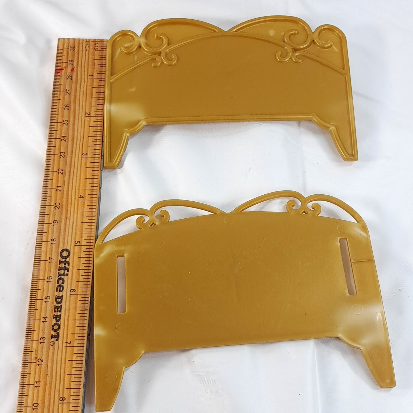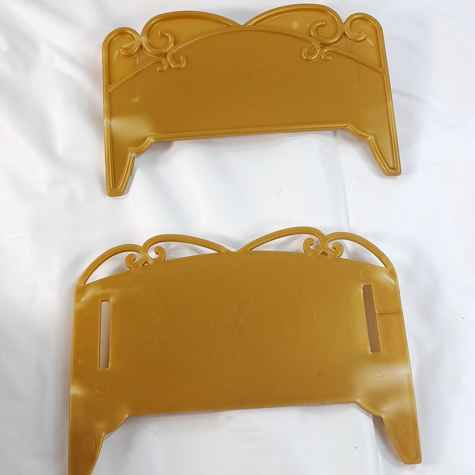 Barbie The Princess the Pauper bed headboard footboard gold parts vintage Plastic wear/marks as shown. Includes parts shown ONLY. Includes just the headboard and footboard. See pics.