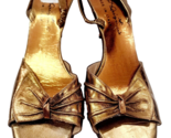 - Barefoot Originals Italy METALLIC GOLD Leather Bow Slingback Heel Pump 8.5N Used
