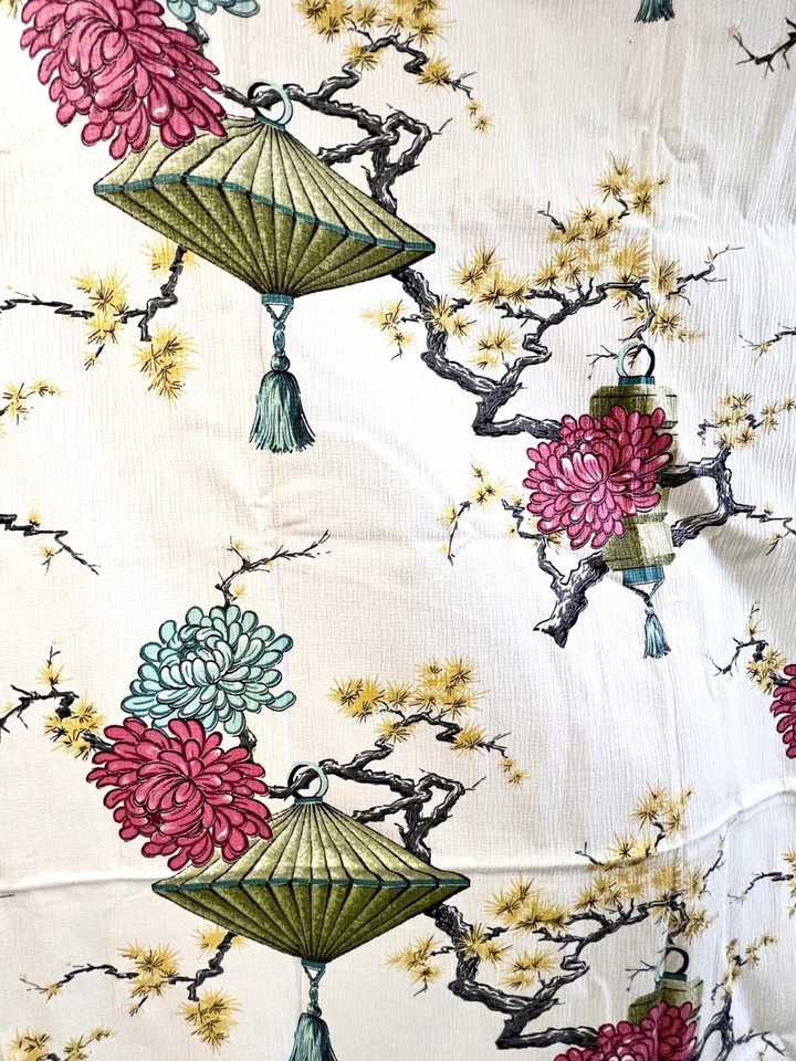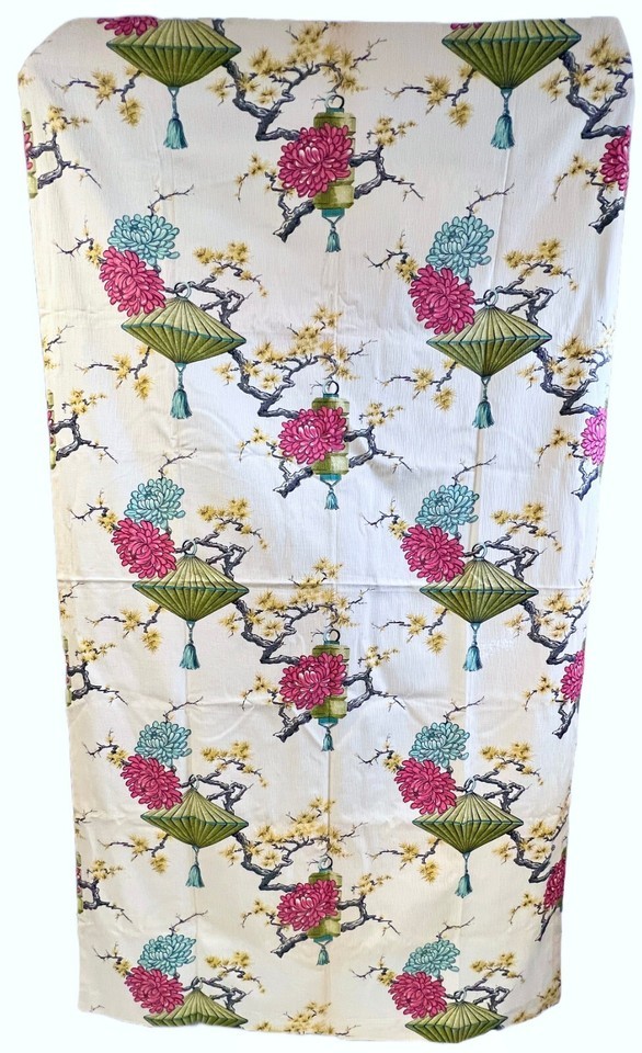 - Barkcloth VTG Curtains Panels 1 Pr + 152" Valance MCM Asian Lanterns Print