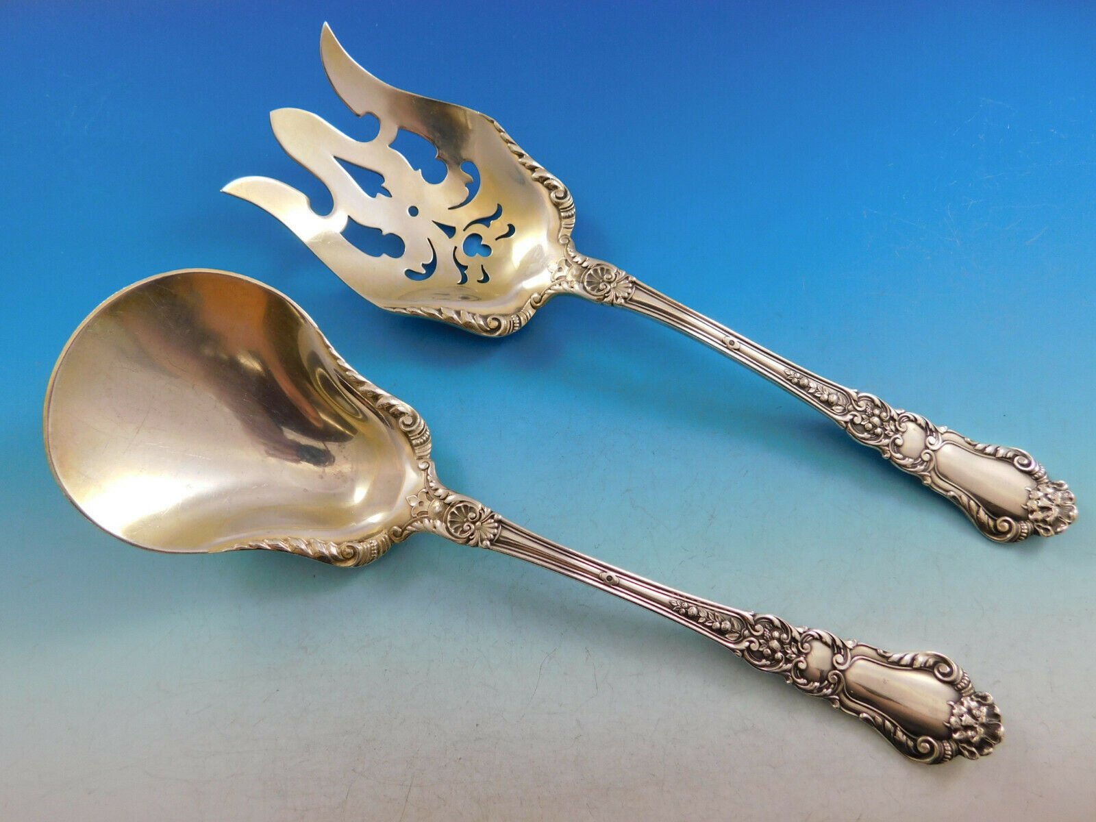 1 Large All-sterling Salad Serving Set, lightly gold-washed, 10 1/4"