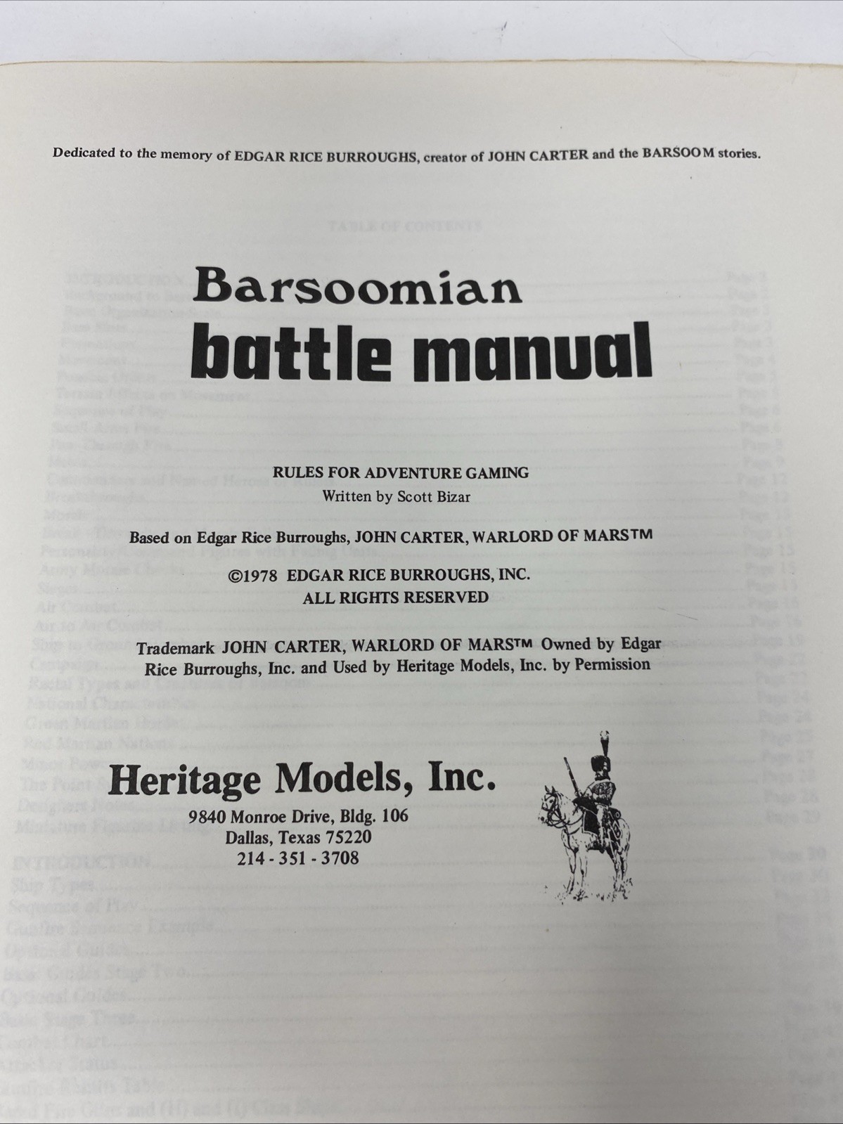 Barsoomian Battle Manual Warlord of Mars 1978 Paperback By: Scott Bizar Wargame Rules for Edgar Rice Burroughs' Classic Science Fiction Series Heritage Models, Inc Very Good Vintage Condition. See all photos. Non-smoking home. Be sure to check out my other items! I am happy to combine shipping charges. Please note: My goal is always 100% complete customer satisfaction. If for any reason you feel your item arrives "not as described," please contact me before leaving feedback. I am a trading assistant. I can sell items for you! |KES-GRE|