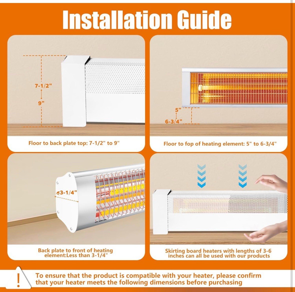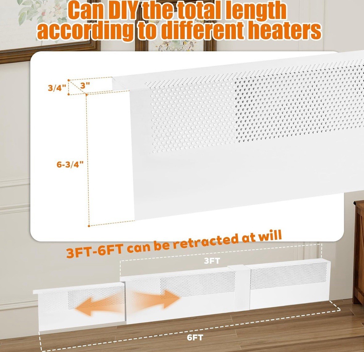 - Baseboard Heater Cover 3-6 ft Adjustable Steel White + End Caps - Easy Install