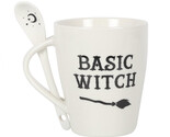 This bewitching mug and spoon set will add a pinch of magic to every cuppa. Style features 'Basic Witch' text and matching teaspoon with a mystical moon and star design that fits perfectly in a slotted handle. 300ml capacity. Dishwasher and microwave safe.
