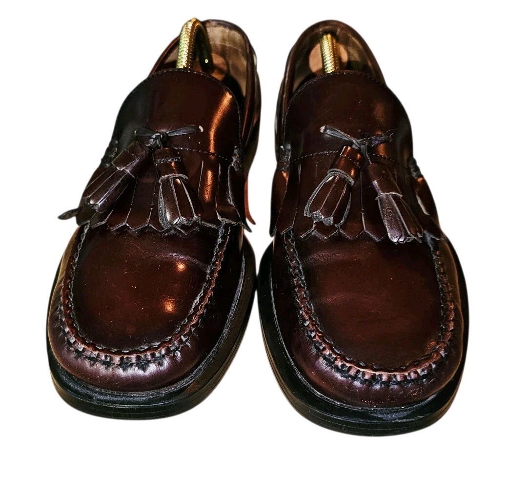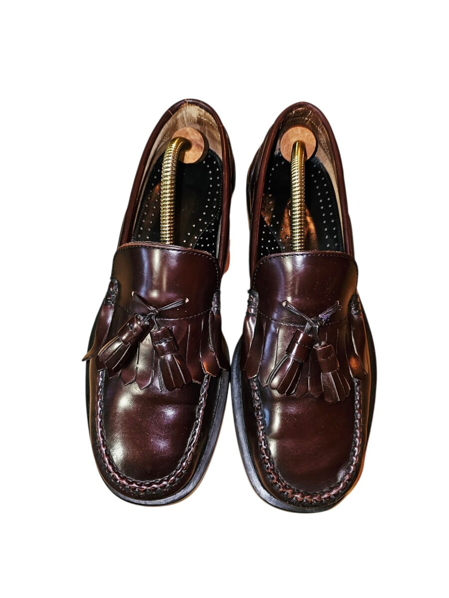 - Bass Courier Loafers Size 8M Burgundy Leather Tassel Loafer Slip-On Shoes