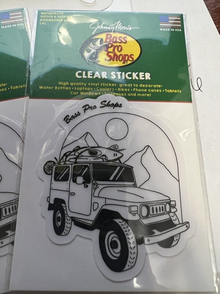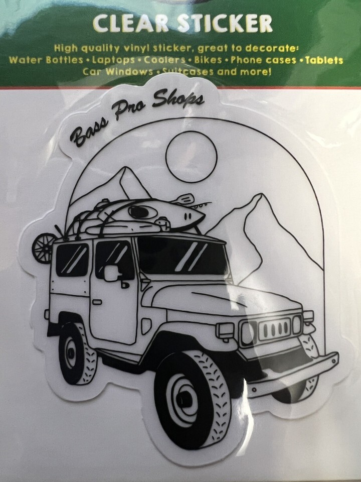 - Bass Pro Shops clear black&white jeep Laminated Vinyl Sticker Decals - Outdoors