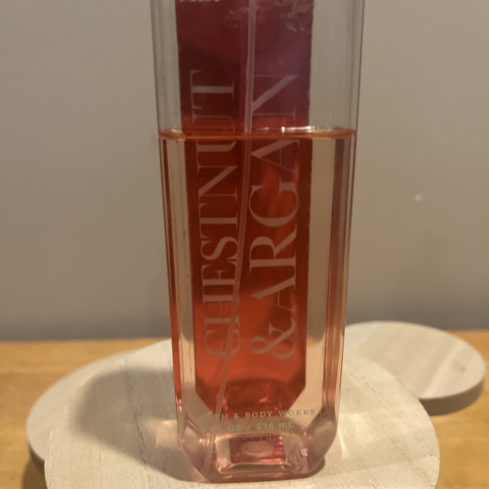 - Bath & Body Works CHESTNUT & ARGAN Fragrance Mist Spray 8 oz - 70% FULL