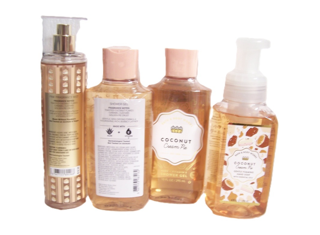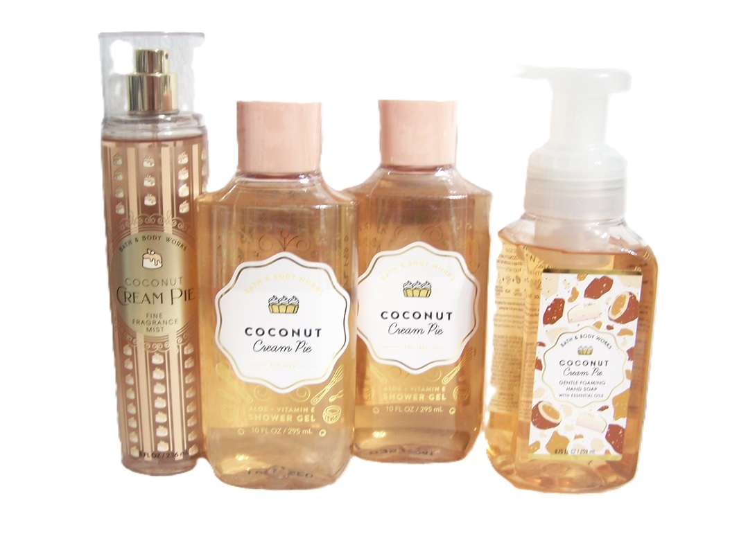 - Bath & Body Works Coconut Cream Pie Fragrance Mist, Shower Gel & Foaming Soap x4