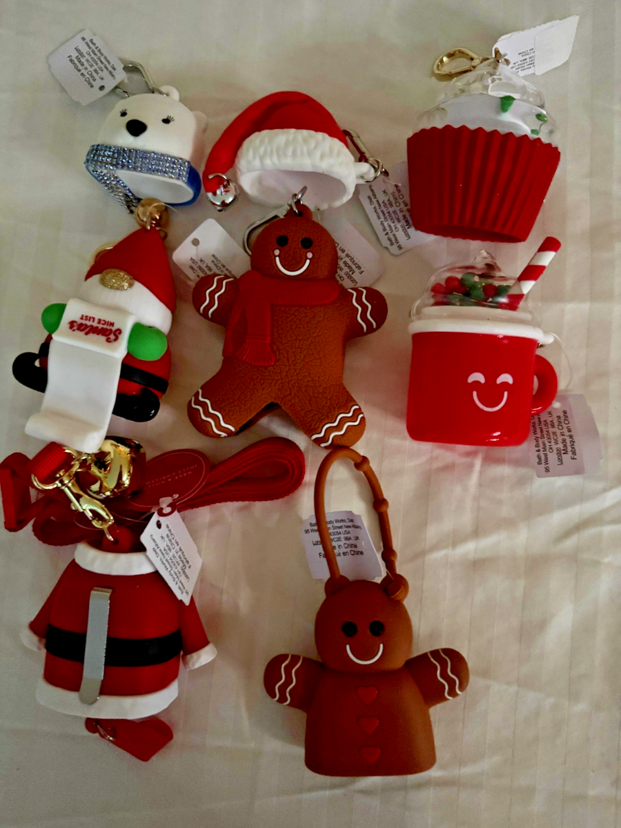 Assorted Bath Body Works Christmas Holiday Pocketbac Holders. These hold 1 oz BBW oval pocketbac hand sanitizers.