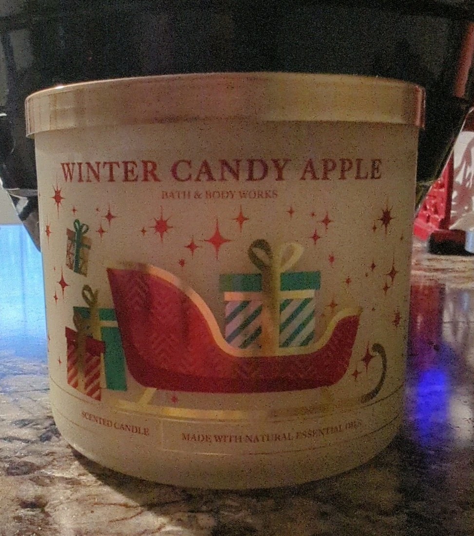 - Bath & Body Works Red Sled Presents Winter Candy Apple 3-wick Candle 14.5oz