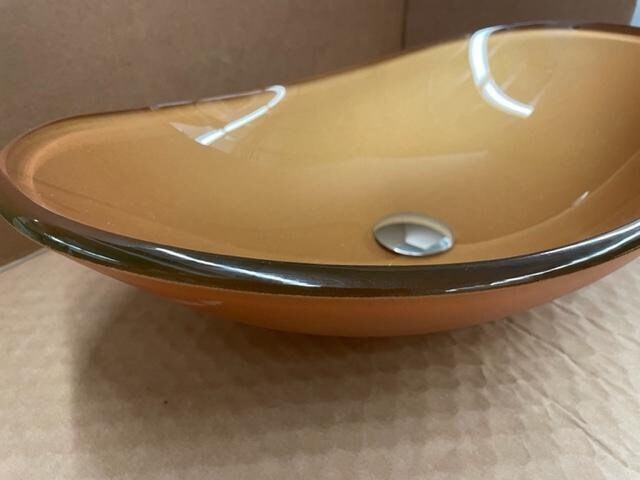 Sunny Golden Tempered Glass Boat Vessel Sink Pop up Set Simple Elegant Design Will Compliment Any Style Bathroom.
