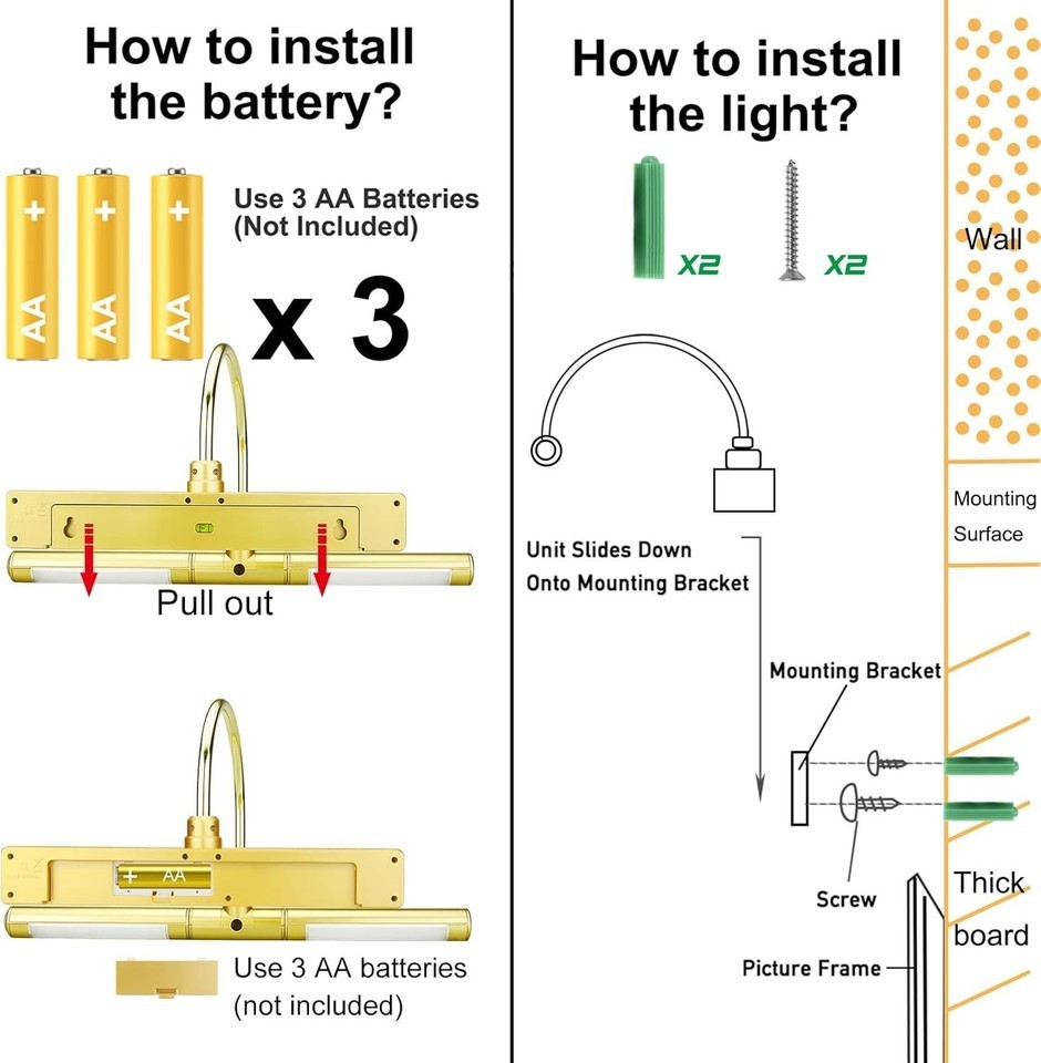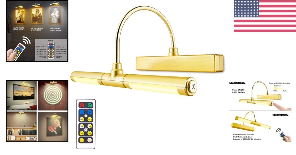 - Battery Operated 180° Adjustable Picture Light - Perfect for Canvas & Portraits