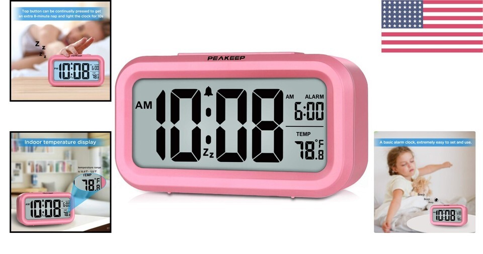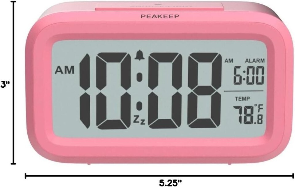 Introducing the charming pink digital alarm clock that effortlessly combines functionality and elegance. Measuring compactly at 5 1/4 (L) x 2 (W) x 3 (H) inches, this lightweight masterpiece is designed for your bedside table, desk, or any corner of your home.