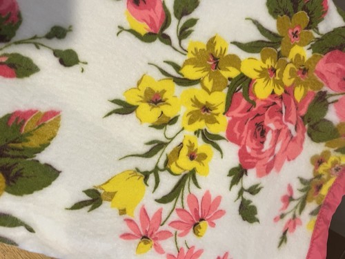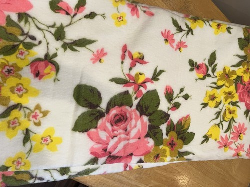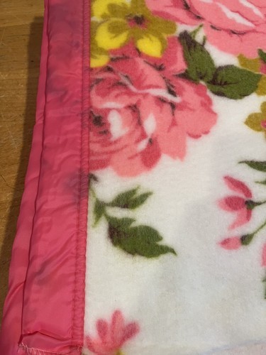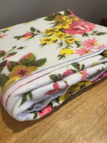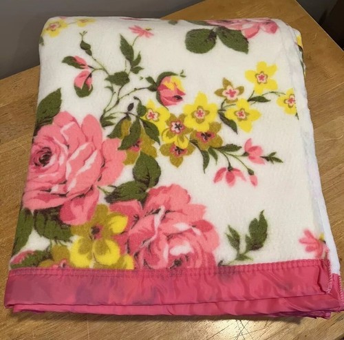 - Beacon Flora Pink Yellow Floral Flowers Satin Trim Blanket Full Size 80 X 90 VTG