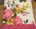 Beacon Flora Pink Yellow Floral Flowers Satin Trim Blanket Full Size 80 X 90 VTG