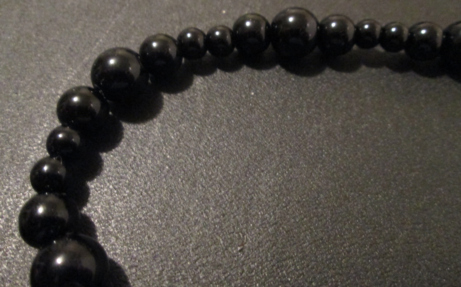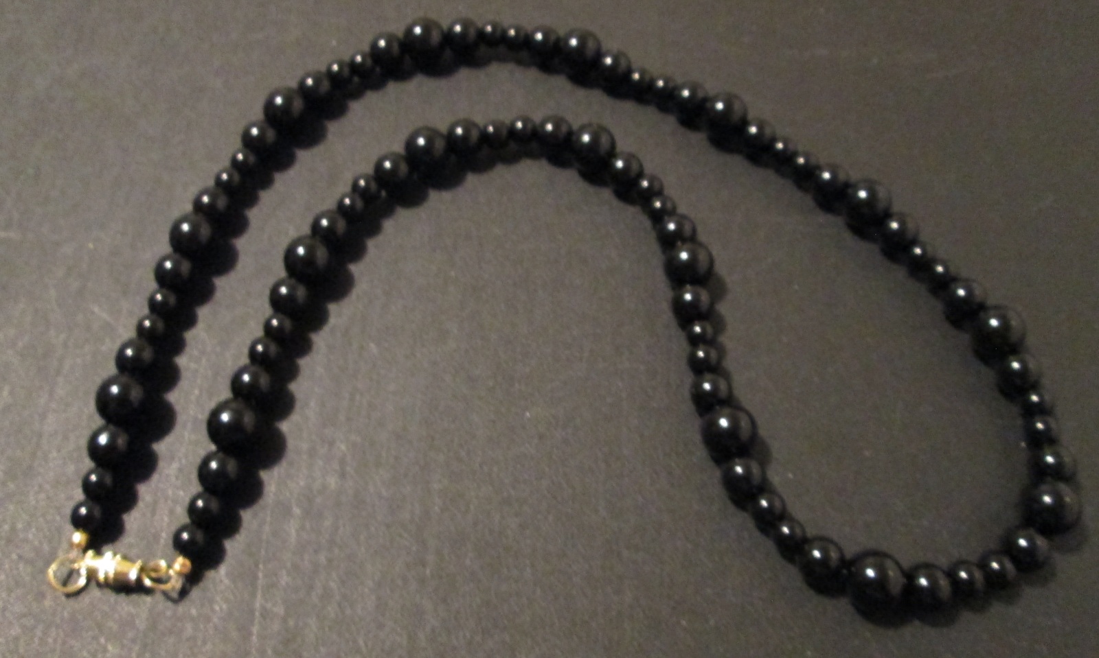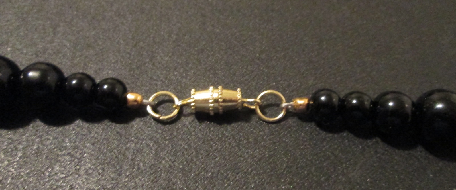 Beaded necklace, black beads, gold barrel screw clasp, 24.5 inches long