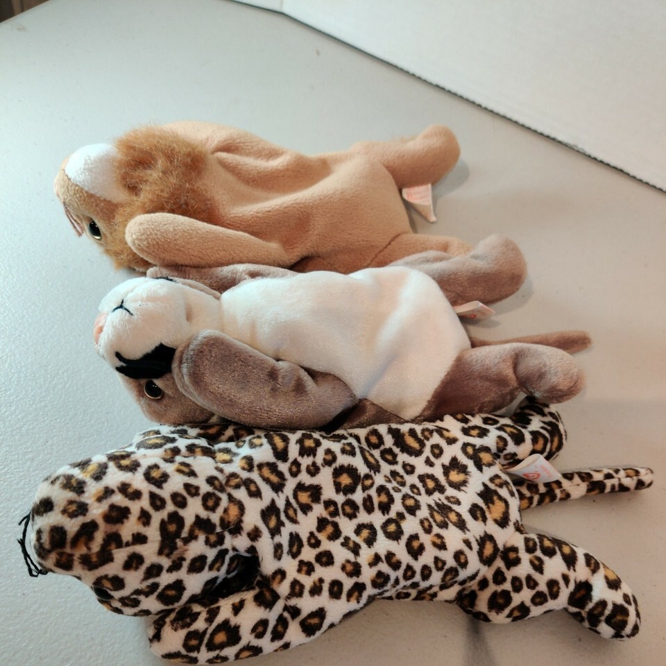 - Beanie Babies Plush: 3 BIG WILD CATS (Roary, Canyon, Freckles)