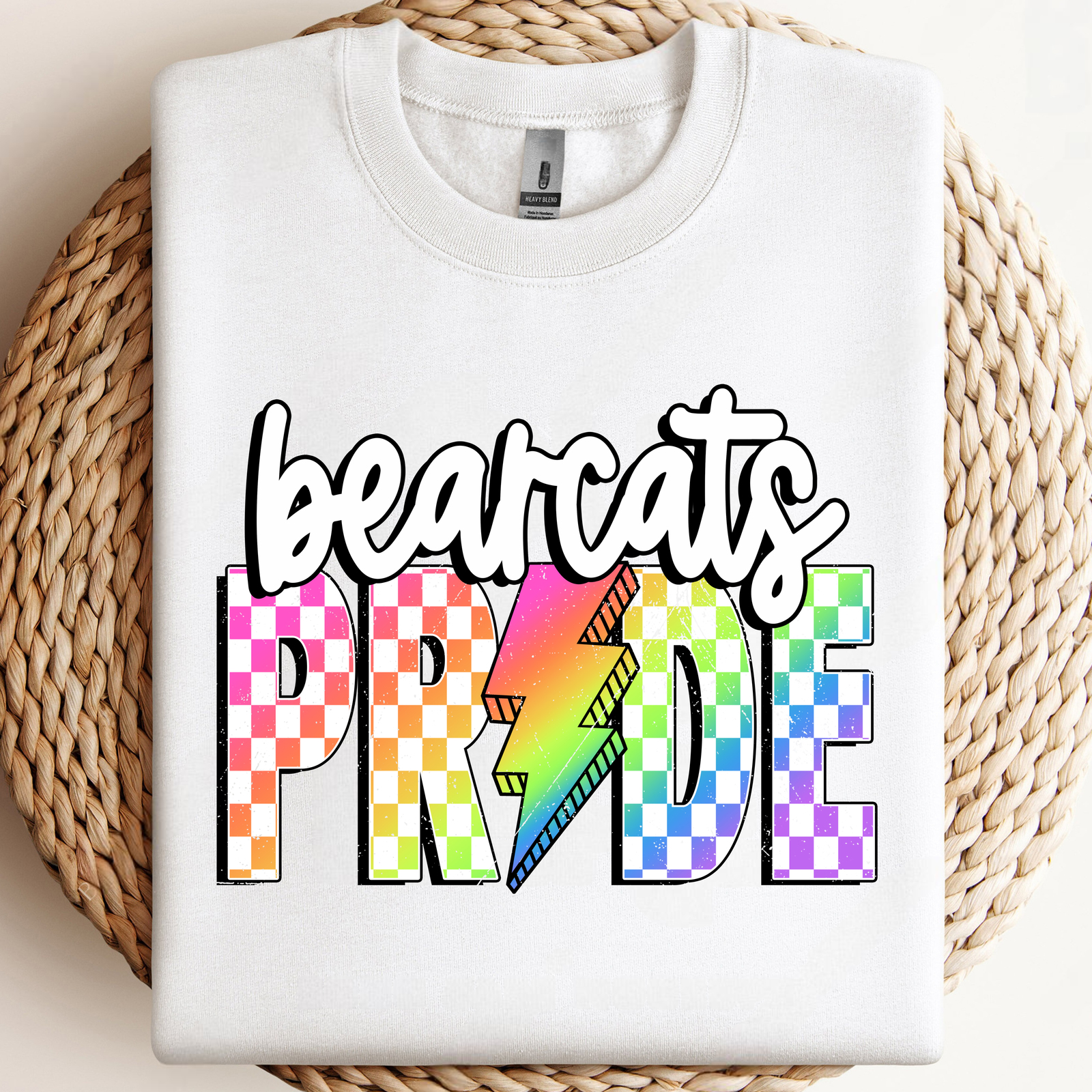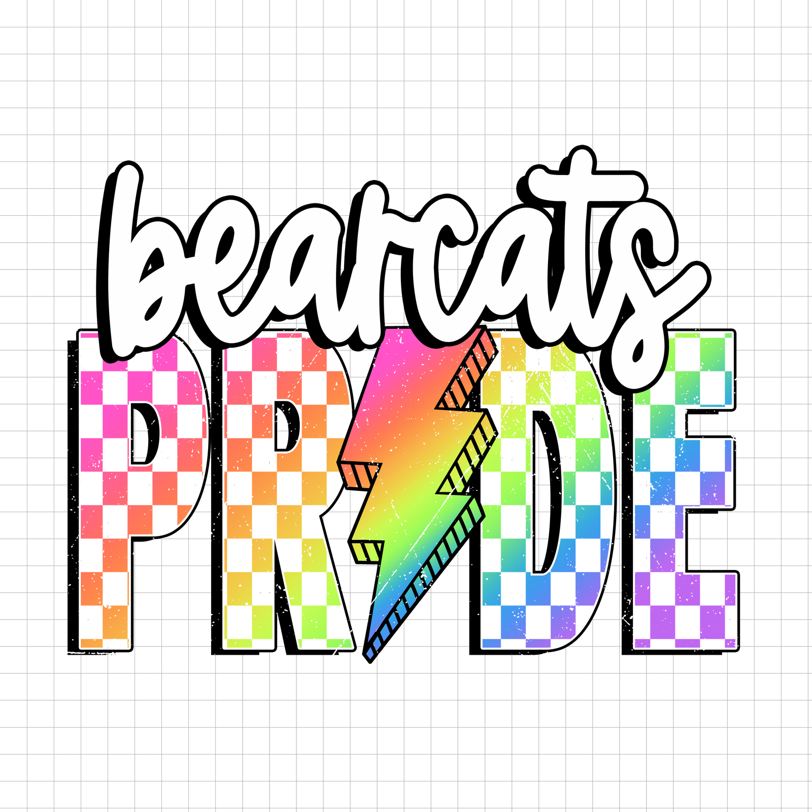 Bearcats Pride PNG, Checkered Bearcats PNG, Lightning Bolt PNG, Neon Mascot PNG, Trending Design