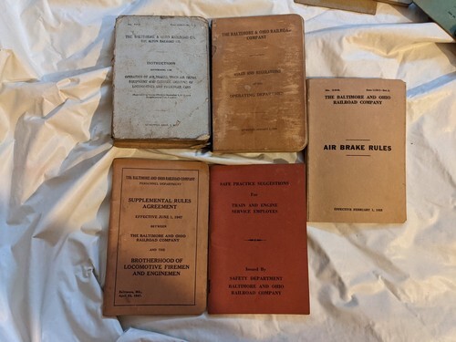 A vendre est un lot de 16 Baltimore Ohio B O Railroad 5 Rules Equipment Rates Pay Manuals RR.