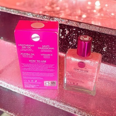 Shine like Barbie with the "Gotta Glow" Body Oil ? a dazzling dry oil that hydrates and highlights your skin with radiant shimmer and a non-greasy finish. This luxurious formula is infused with vitamin E and jojoba seed oil to leave skin soft, nourished, and glowing with multi-dimensional pink, gold, and silver reflects.