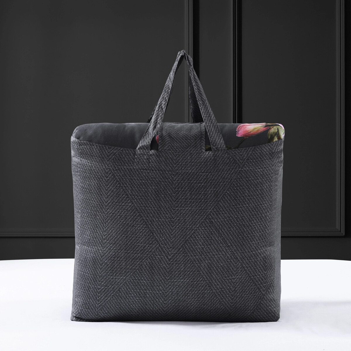 Bring style and comfort to your bedroom with our Flower Garland 5 Piece Reversible Comforter Set. A lush garland of bright pink and ivory flowers stands out against a rich dark grey backdrop, creating a striking centerpiece for your bed.
