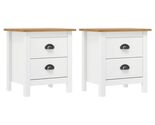 - Bedside Cabinet Set of 2 White and Honey Brown Solid Pine Wood