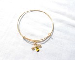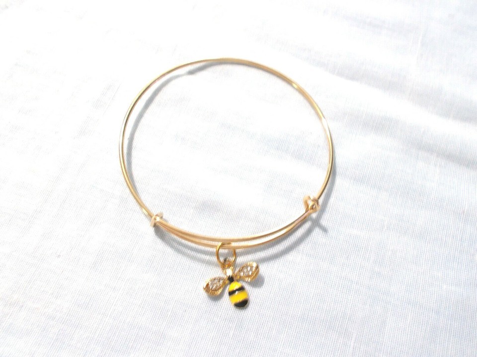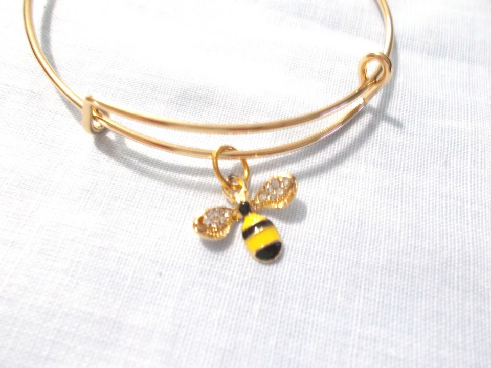 - BEE ENAMEL COLORS AND CRYSTALS CHARM ON GOLDTONE ADJUSTABLE BANGLE BRACELET