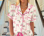 Pink Bow Print Half Sleeve Shirt and Shorts Pajama...