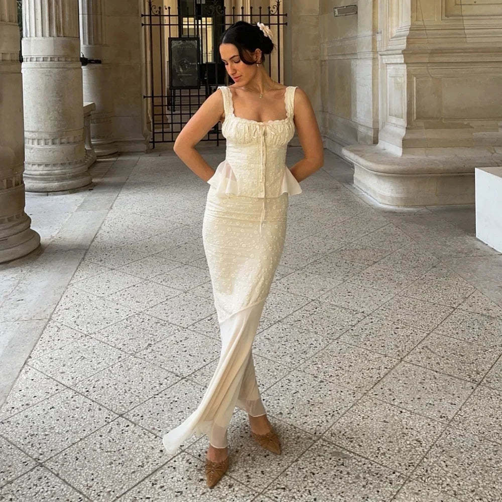 - Beige Long Matching Set Sexy Mermaid Skirt