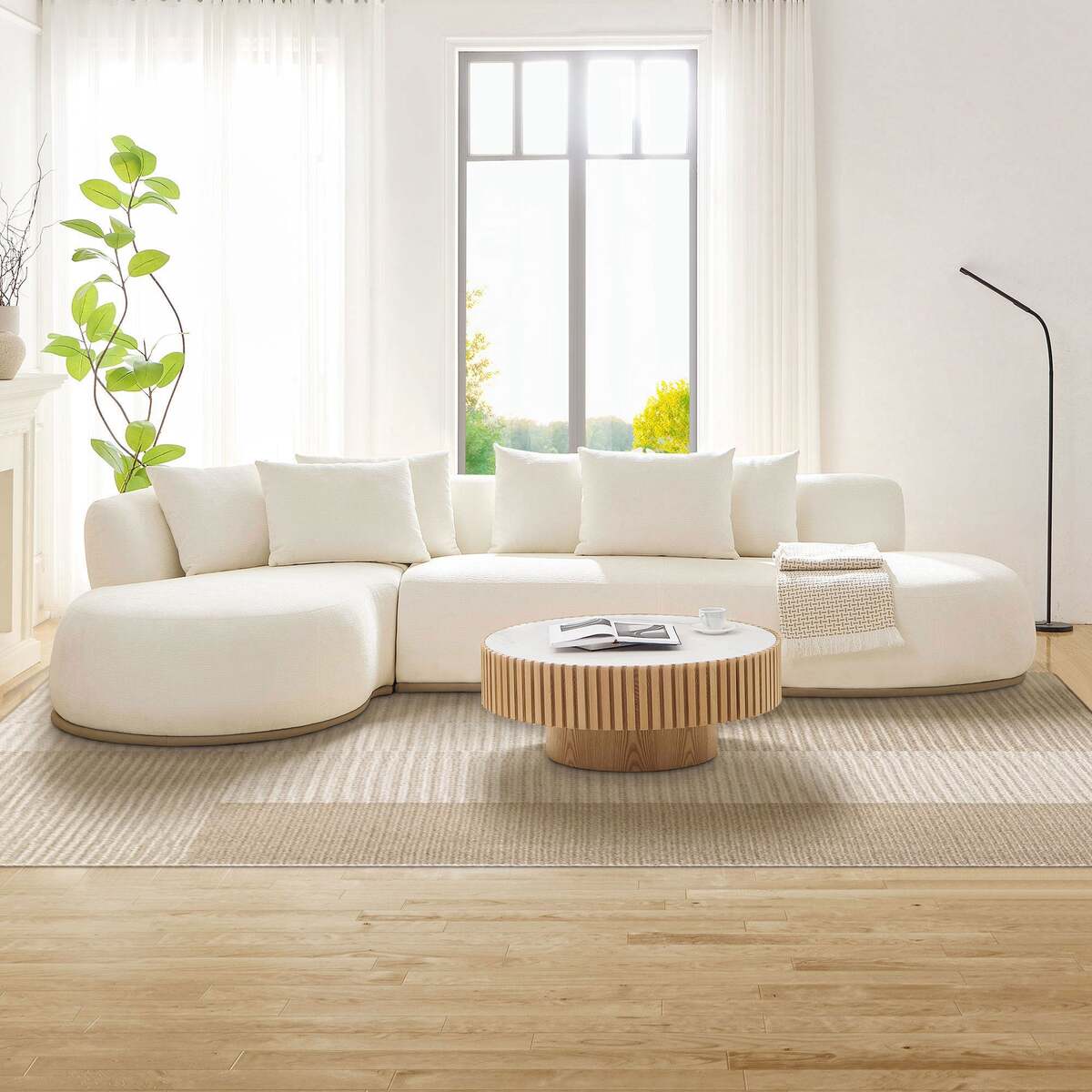 1 Spacious Modern Design: Oversized L-shaped sectional (134.6'W x 71.65'D) with chaise and included ottoman, armless sleek design, clean lines, and contemporary beige finish?perfect for large spaces.