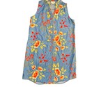 Beige by eci Dress Womens 10 Blue Denim with Red Floral Embroidery Summer Casual