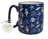 - Bella 10 Strawberry Street Nautical Coffee Mug Cobalt Blue Fish Seashells NEW