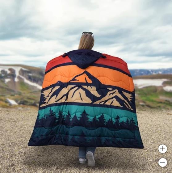 - Below Zero Blanket Multicolor Wearable Hood Water-Resistant Camping Sports