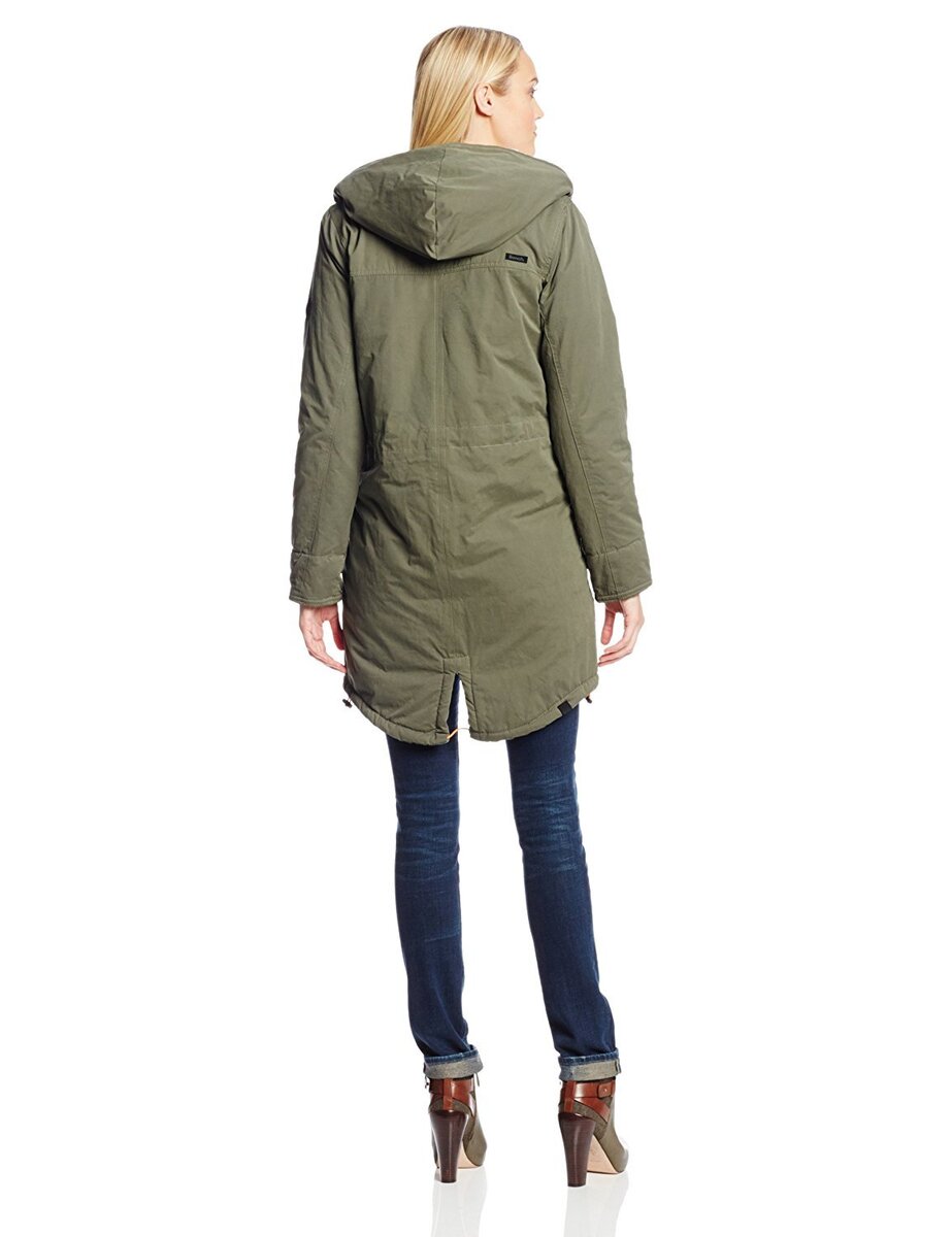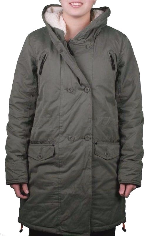 Bench Women's Long Green Hawkish Jacket Winter Coat w Soft Lining BLKA1773 NWT