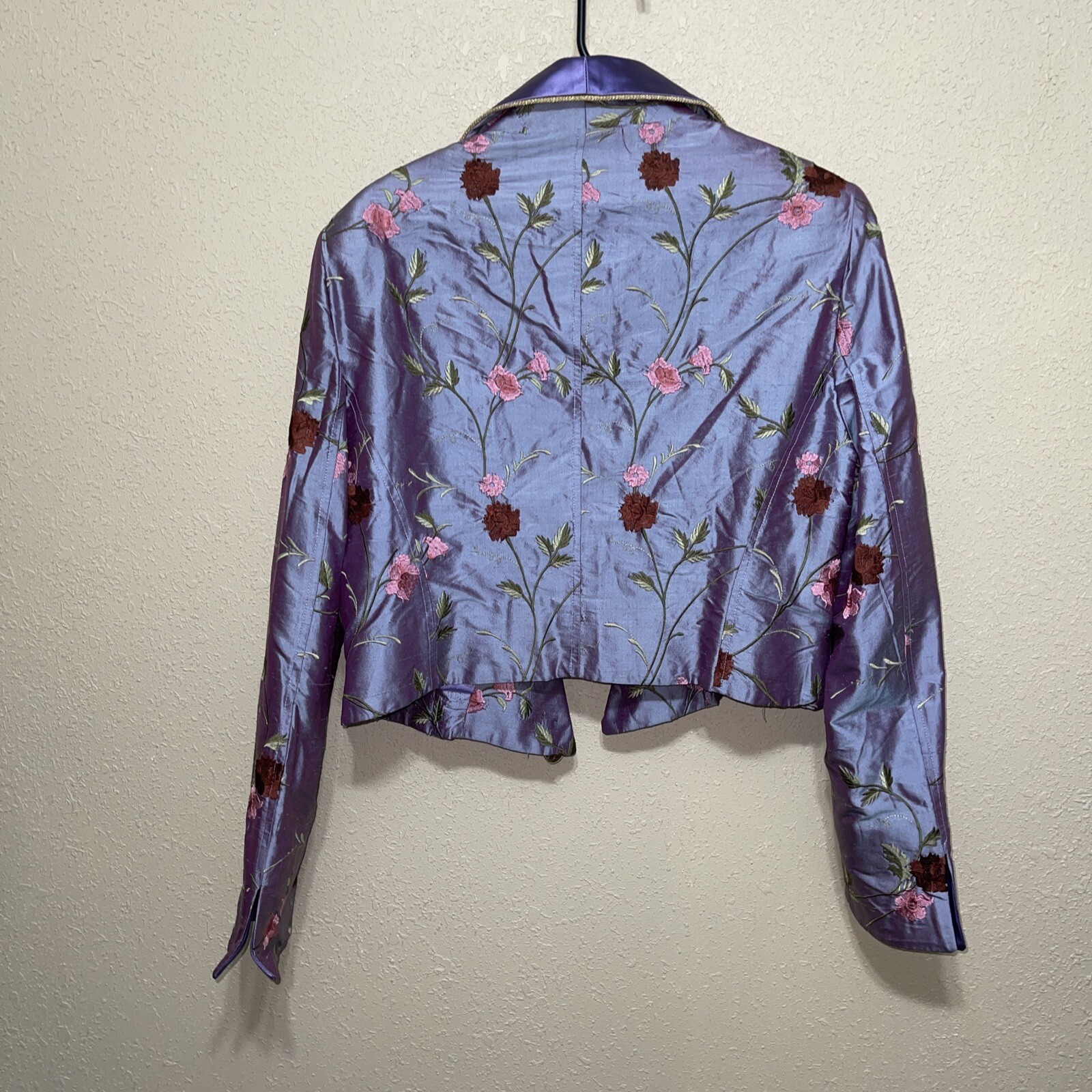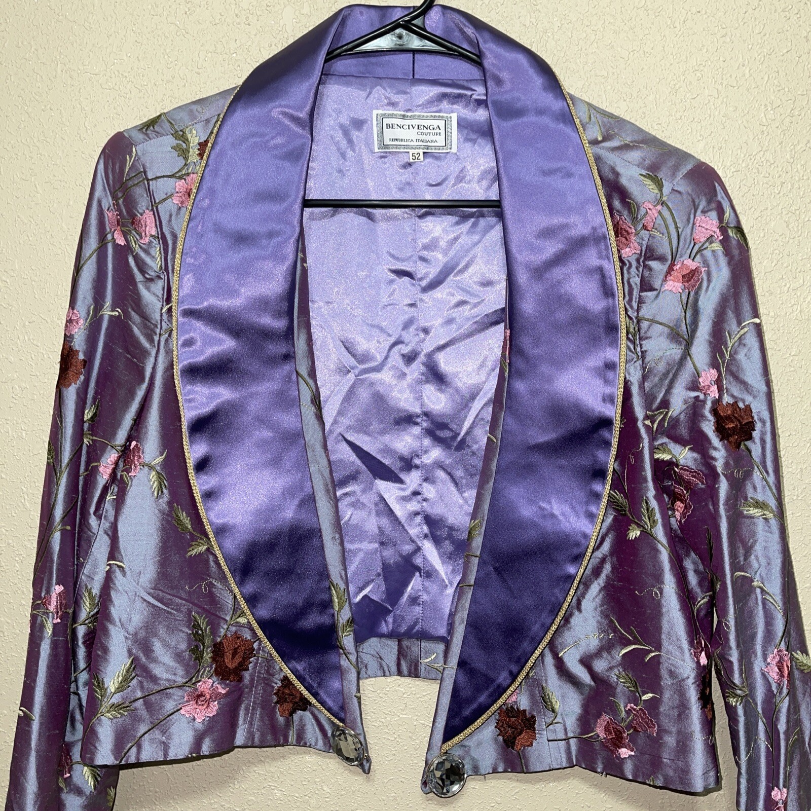 Bencivenga couture blazer FLORAL EMBELISHED SZ 52 NEW 100% SILK MADE IN ITALY BLAZER 19" LONG 38" WAIST PADDED SHOULDERS DRESS 43" LONG 38" WAIST LINED BACK ZIP CLOSURE