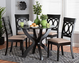 Benjen Modern Sand Fabric and Dark Brown 5-Piece Dining Set