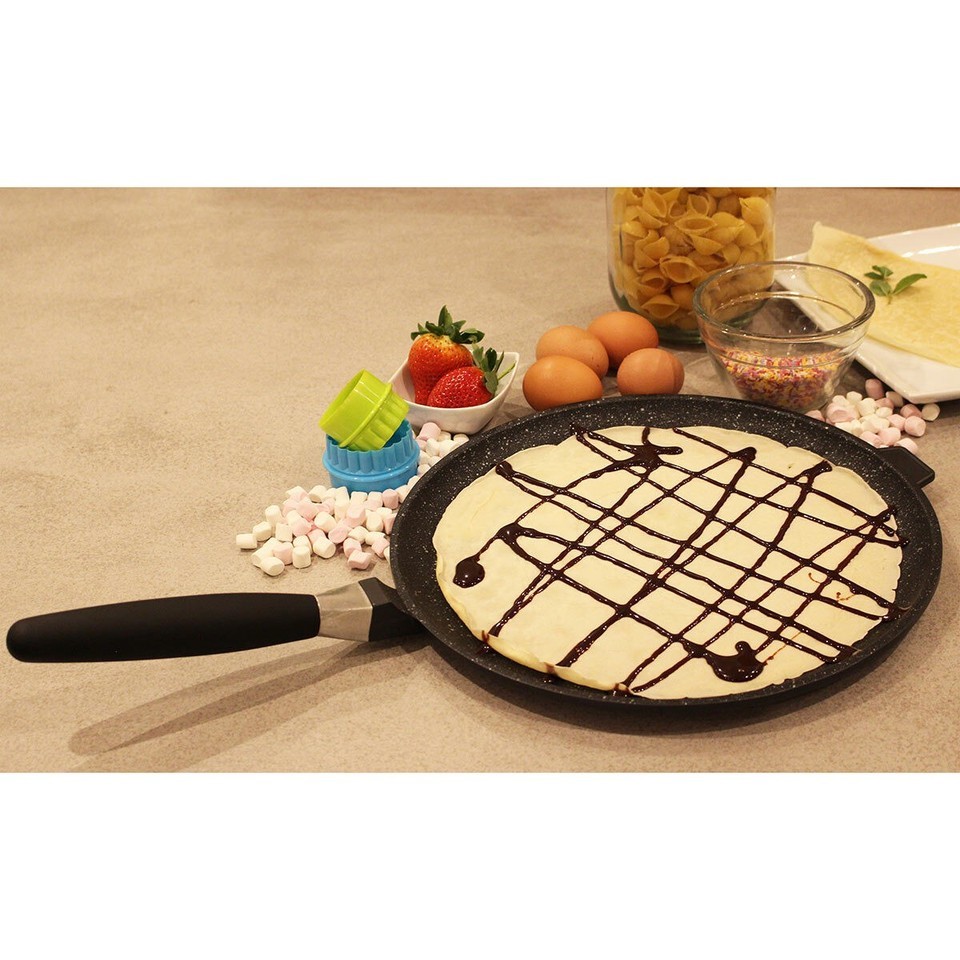 The BergHOFF Eurocast Non-stick Pancake Pan is ideal for fried eggs, omelettes, crepes pancakes but can also be used to bake delicious flatbreads and pizzas as well as traditional Asian breads like roti, chapati and dosa. The superior non-stick surface is PFOA free and is designed to make flipping and tossing crepes pancakes easier and healthier while fat-free cooking stop food from sticking to the pan.