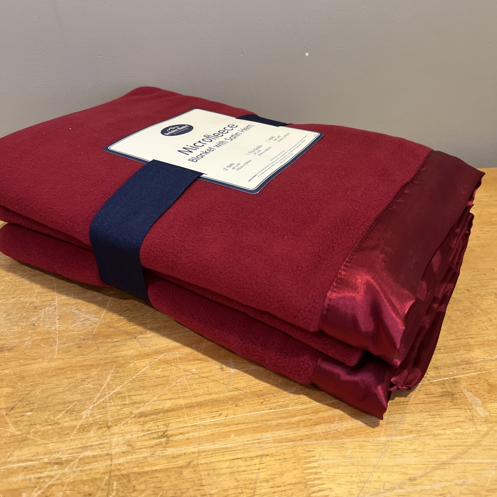 - Berkshire Blanket Microfleece Satin Hem Maroon Red Twin Throw